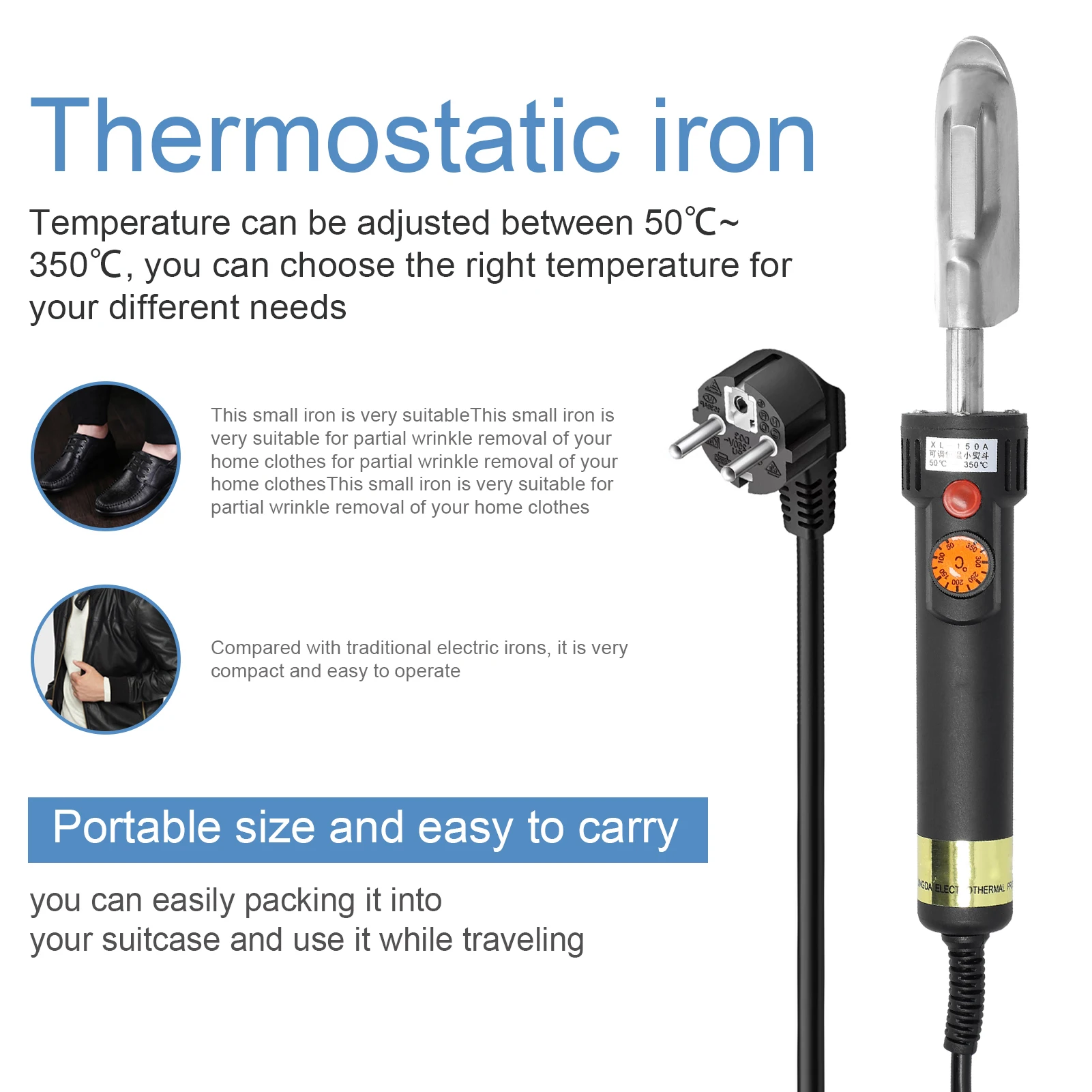 Это небольшое железо очень подходит для частичного удаления морщин вашей домашней кожаной одежды. По сравнению с традиционными электрическими утюгами, он очень компактный и простой в эксплуатации. Температура может быть скорректирована для ваших различных потребностей, приходите и наслаждайтесь этим практичным инструментом, он не подведет вас.