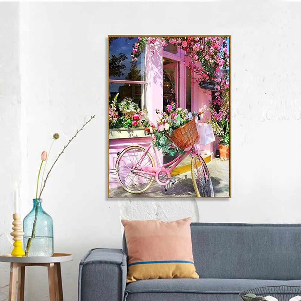 Отзывы о HUACAN велосипеды Цветочные фотографии по номерам пейзаж Diy рамка живопись дом на