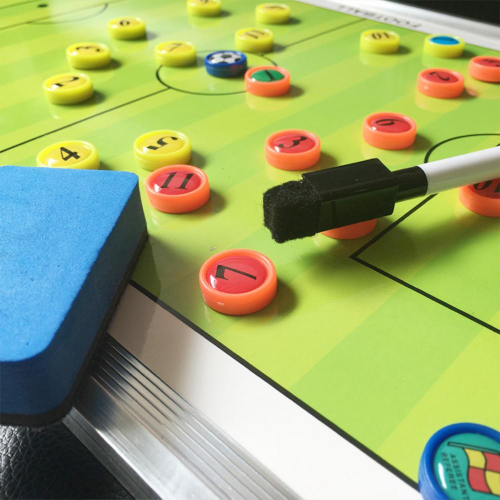 Конструкция подвесного крючка позволяет подвесить его на стене. Эта плата может помочь тренерам легко установить формирование и планы игры для игроков.