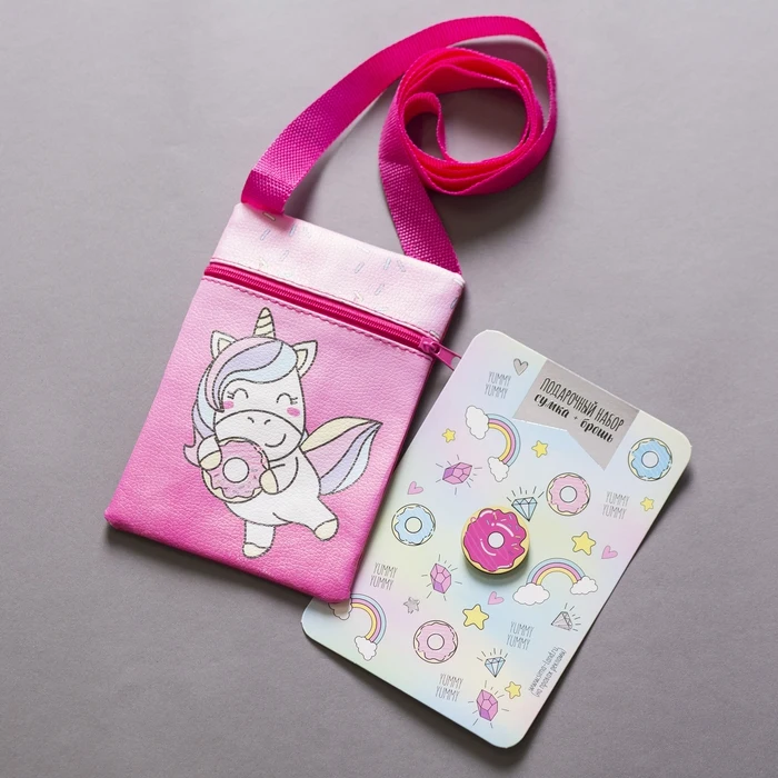 Детский подарочный набор сумка + брошь, цвет розовый, «Единорог»
