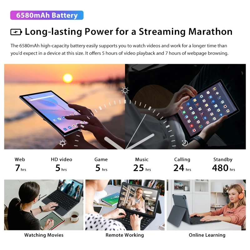 4. Аккумулятор большой емкости 6580 мАч, более длительное время работы в режиме ожидания.