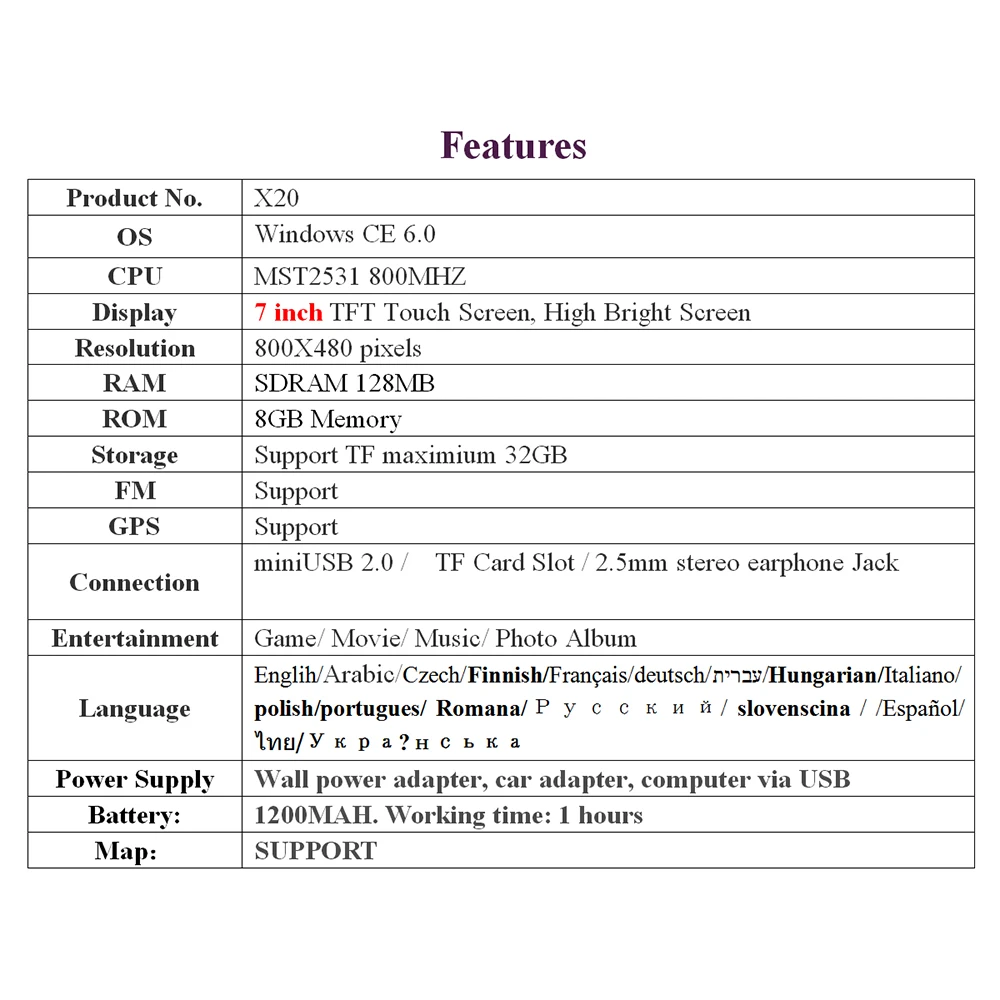 Стандартная функция: Видео/Аудио/fm-передатчик/gps-навигация
