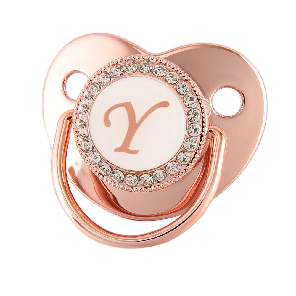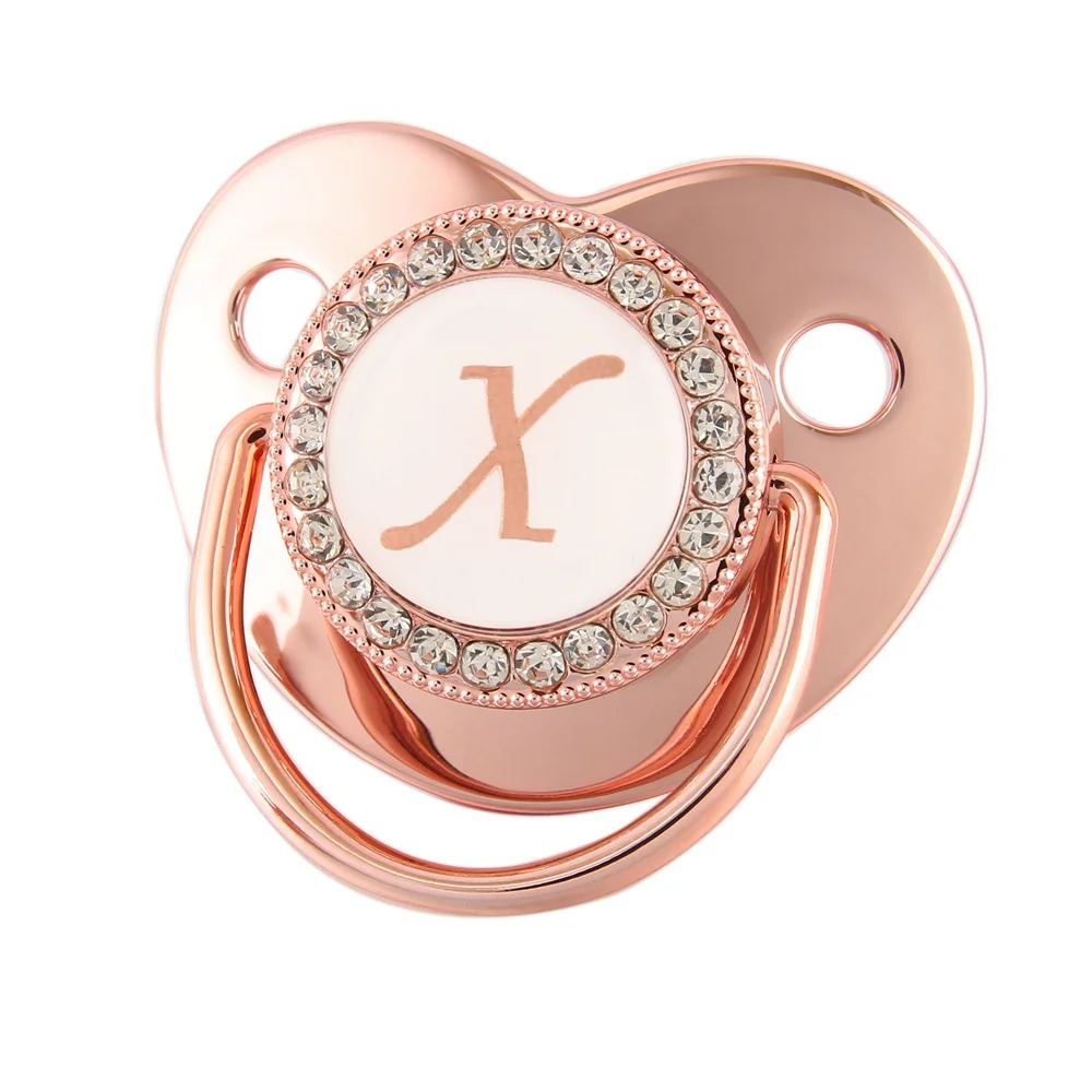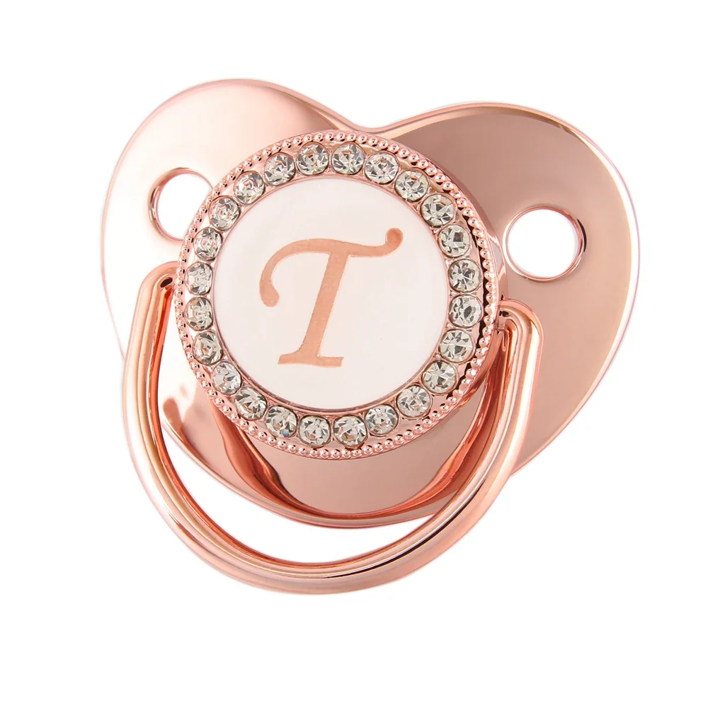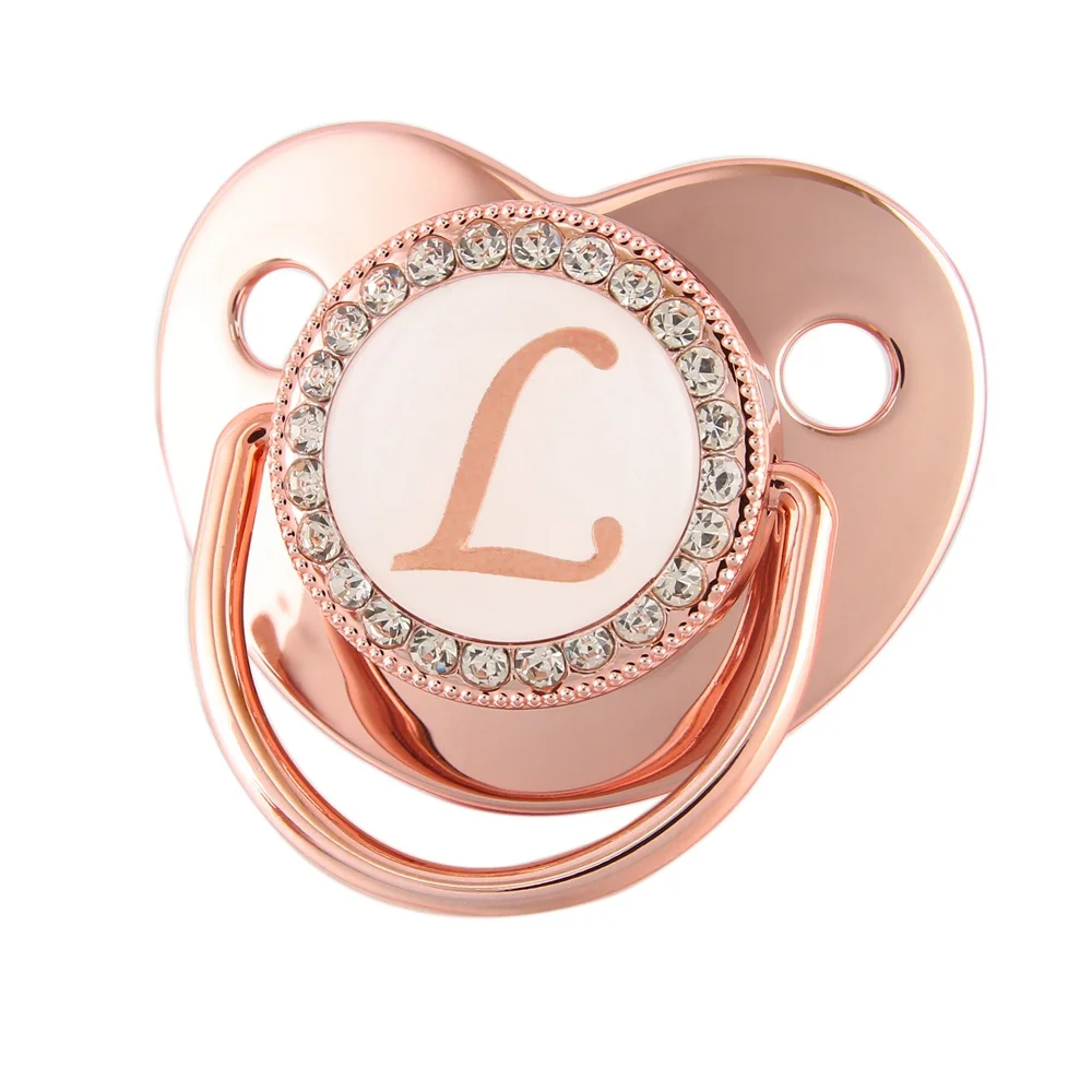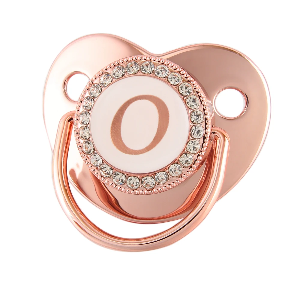 26 наименований, пустышка для новорожденных с надписью, Силиконовая пустышка для новорожденных, розовое золото, блестящая пустышка для младенцев, без BPA, пустышка для детей 0-12 месяцев