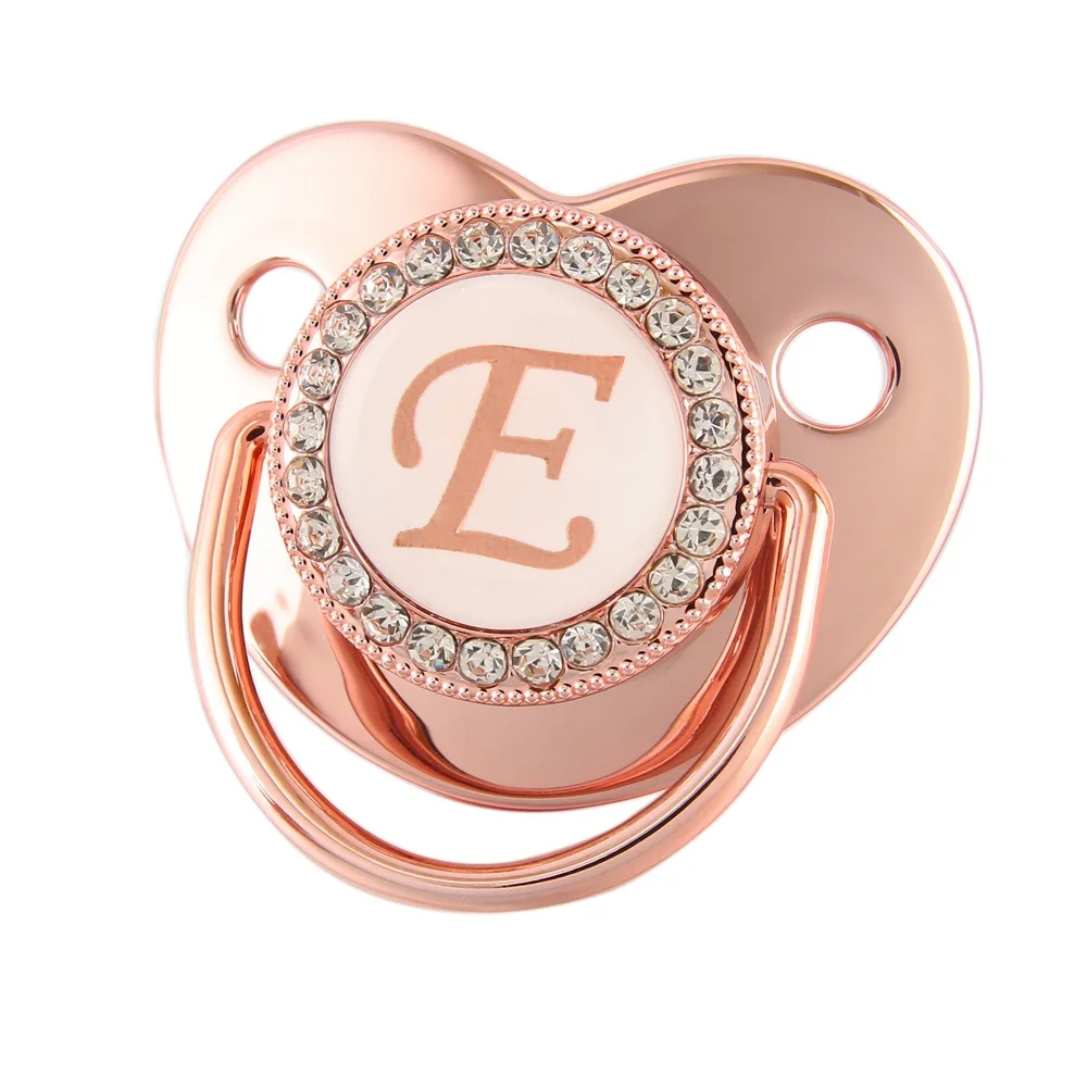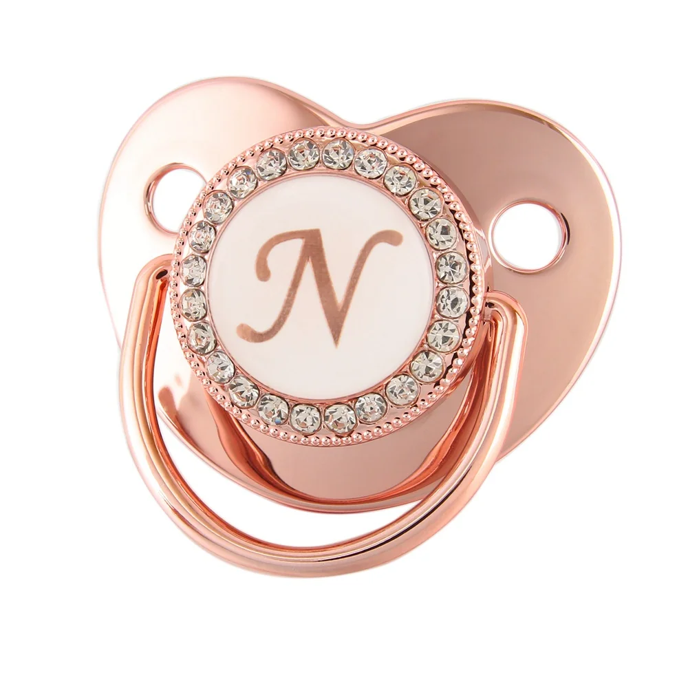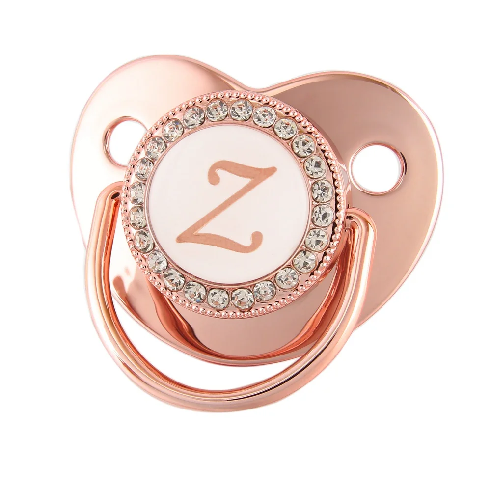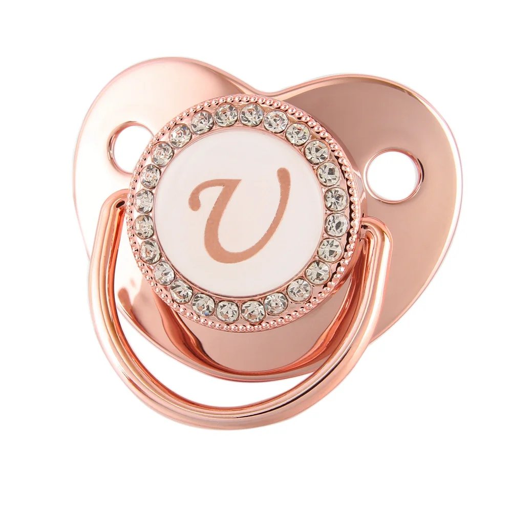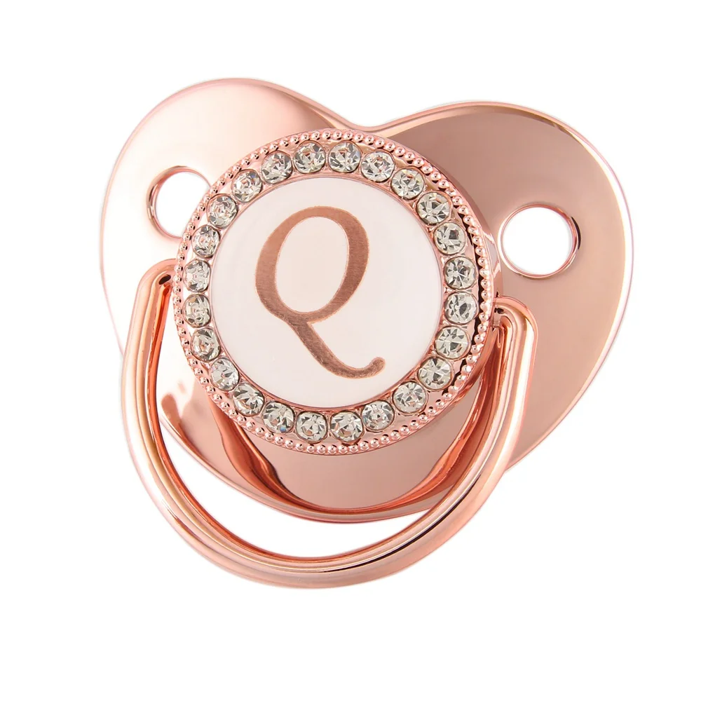 26 наименований, пустышка для новорожденных с надписью, Силиконовая пустышка для новорожденных, розовое золото, блестящая пустышка для младенцев, без BPA, пустышка для детей 0-12 месяцев