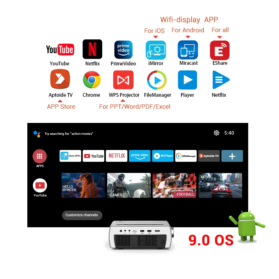 Отзывы о BYINTEK K18 портативный мини Full HD 1920x1080 домашний кинотеатр ЖК Смарт Android 9 0 Wifi
