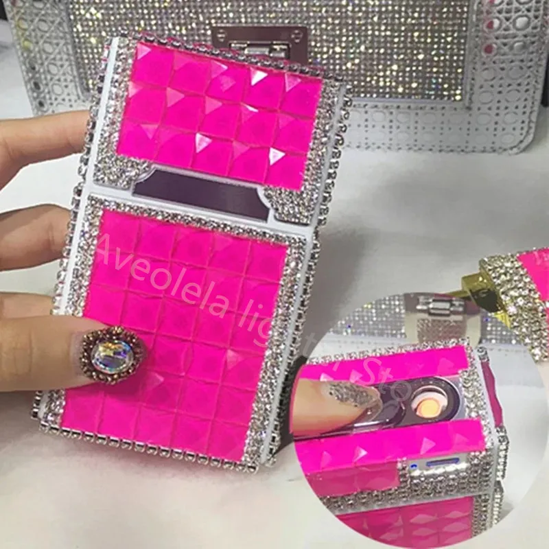 84 мм * 20 сигареты ручной работы липкие Стразы Автоматический Металлический Чехол для сигарет коробка с USB зарядной зажигалкой и без функции зажигалки для женщин