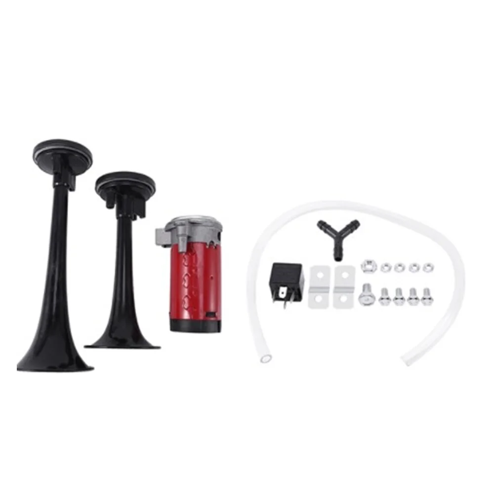115dB 12V двойной трубы воздушный рожок-качество красный/черный супер громкий звуковой сигнал мощный звук поезда блестящие зарядное устройство с двумя выходами для автомобиля Автофургон лодка воздушный рожок