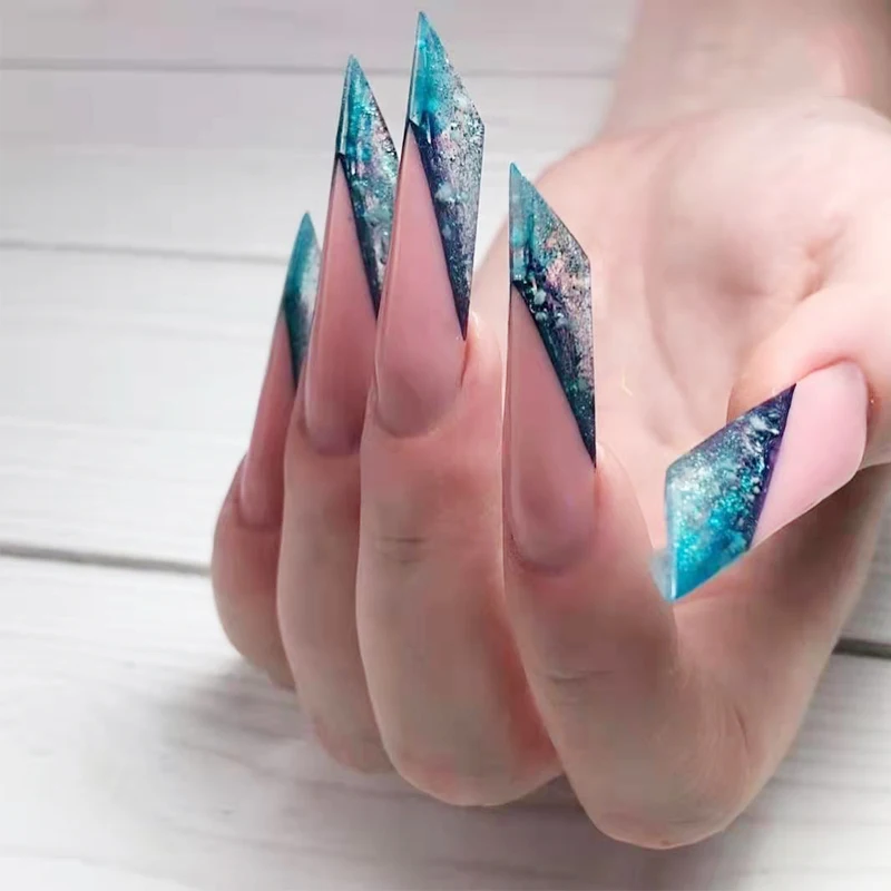 6. Удалите накладные Кончики ногтей, обрежьте форму и отполируйте ногти.