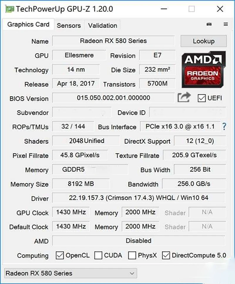 * Оригинальный чипсет AMD Radeon (чип RX 580/570/574/470/474 отправляется случайным образом)