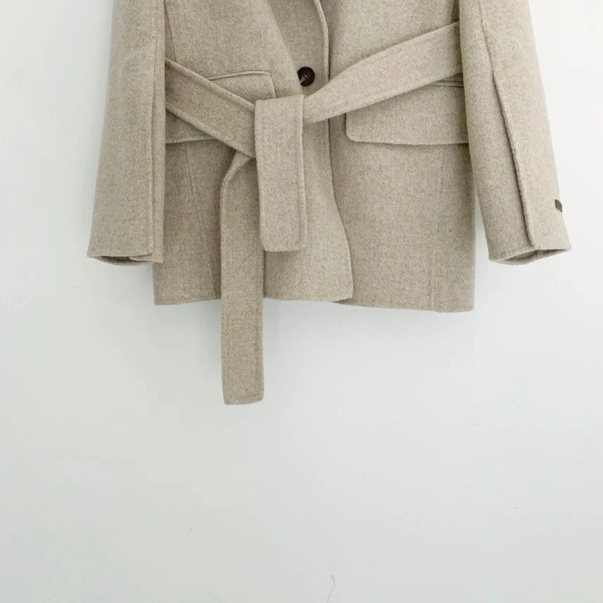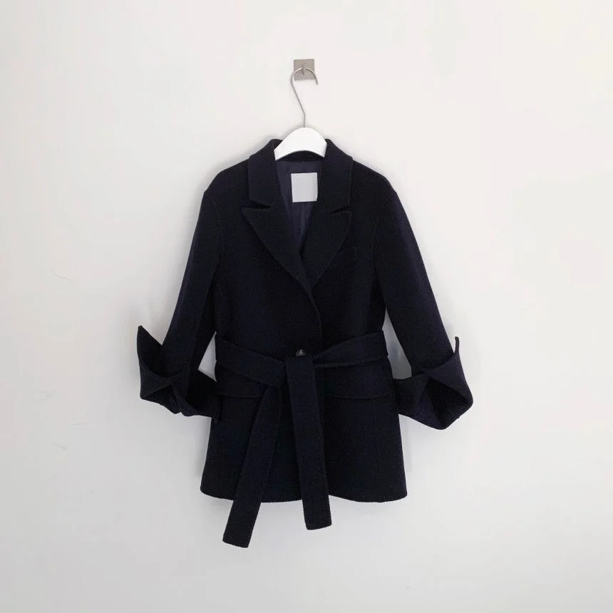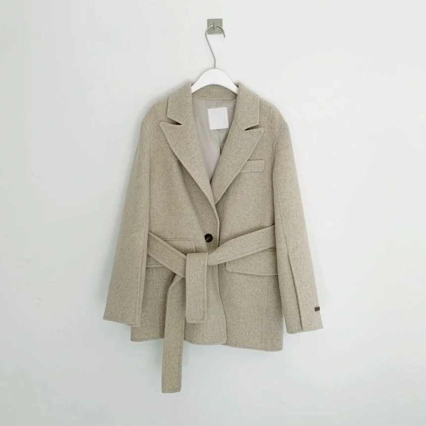 Отзывы о [EWQ]Korean Autumn Suit Collar One Button Bandage Waist Closed Split Long Sleeve Warm Wool Coat Female Fashion Winter 16E3209 - купить по