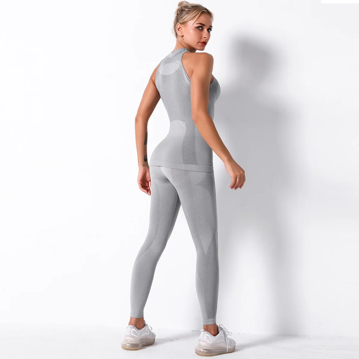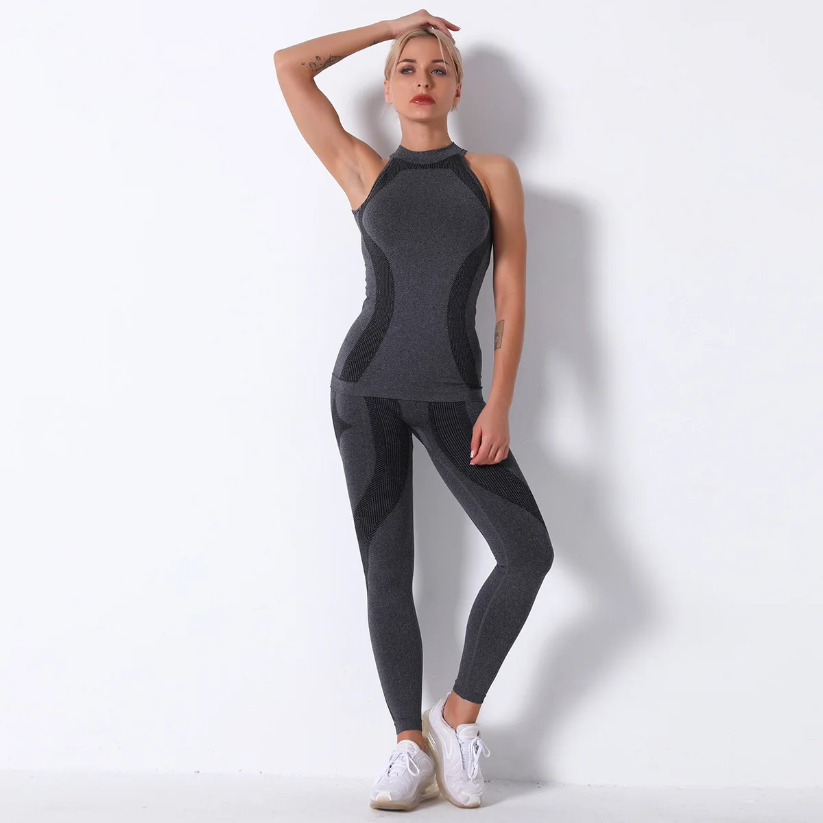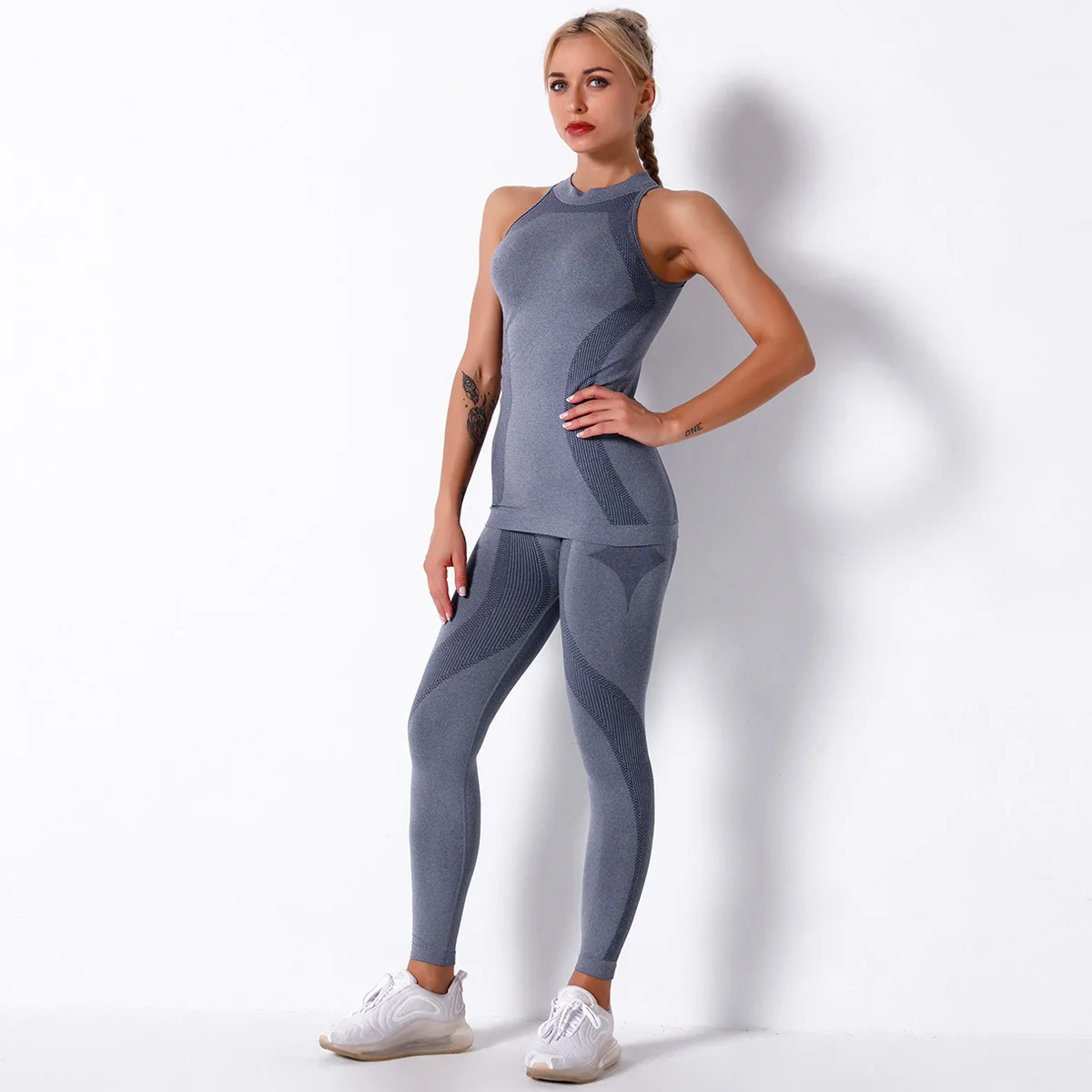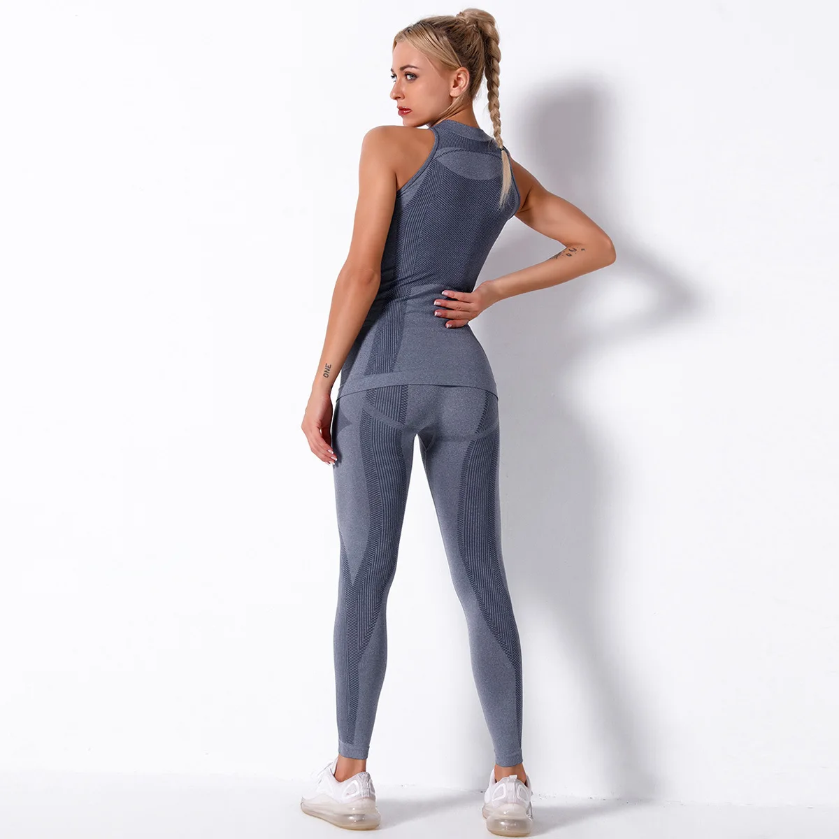 Отзывы о Женский спортивный костюм для йоги бесшовный трикотажный в полоску из двух