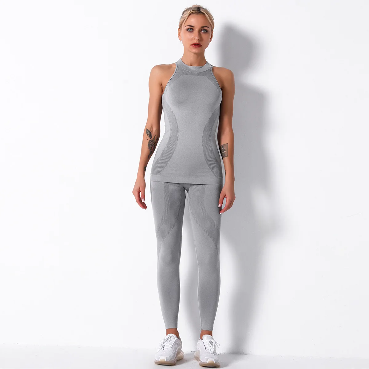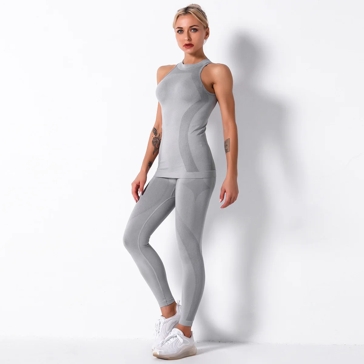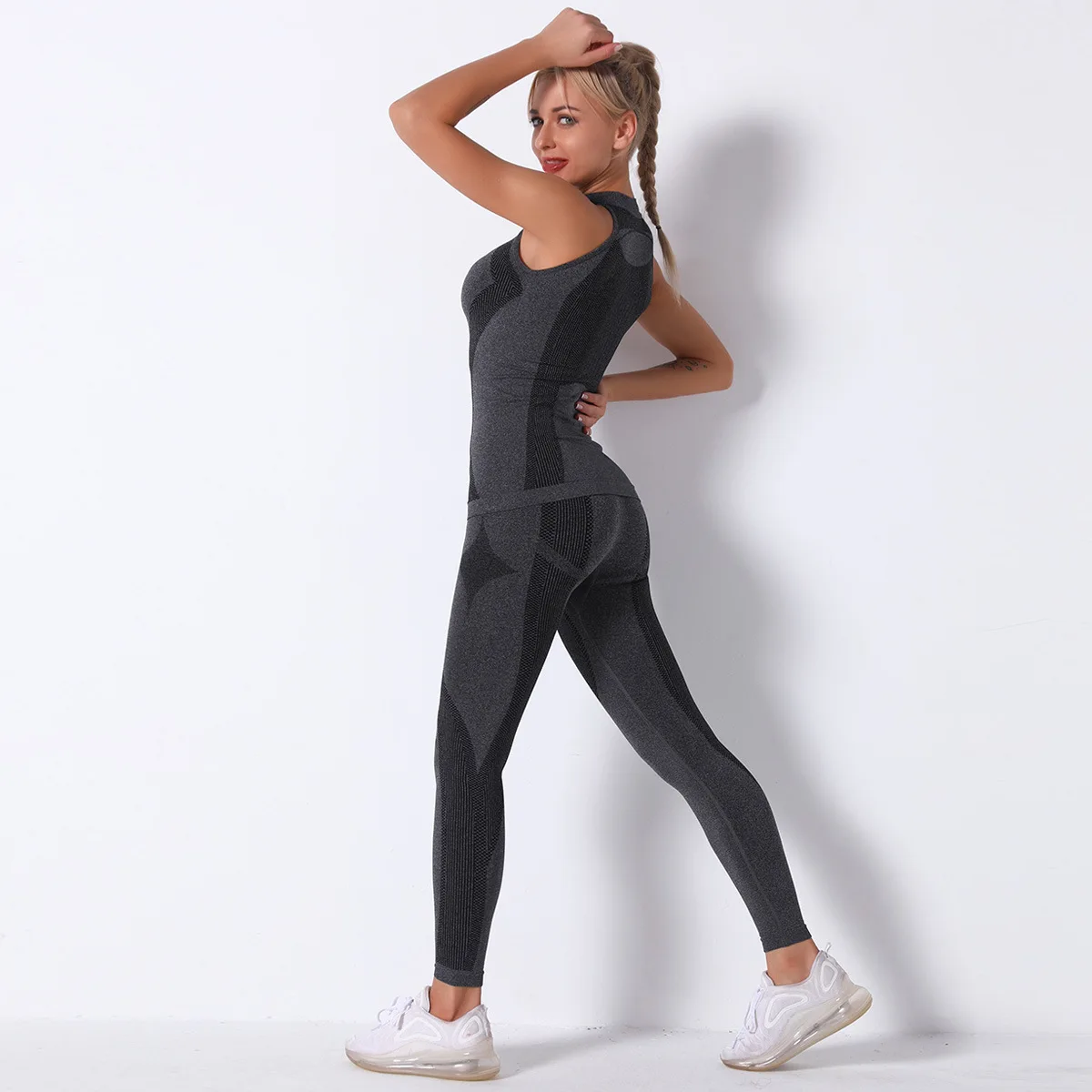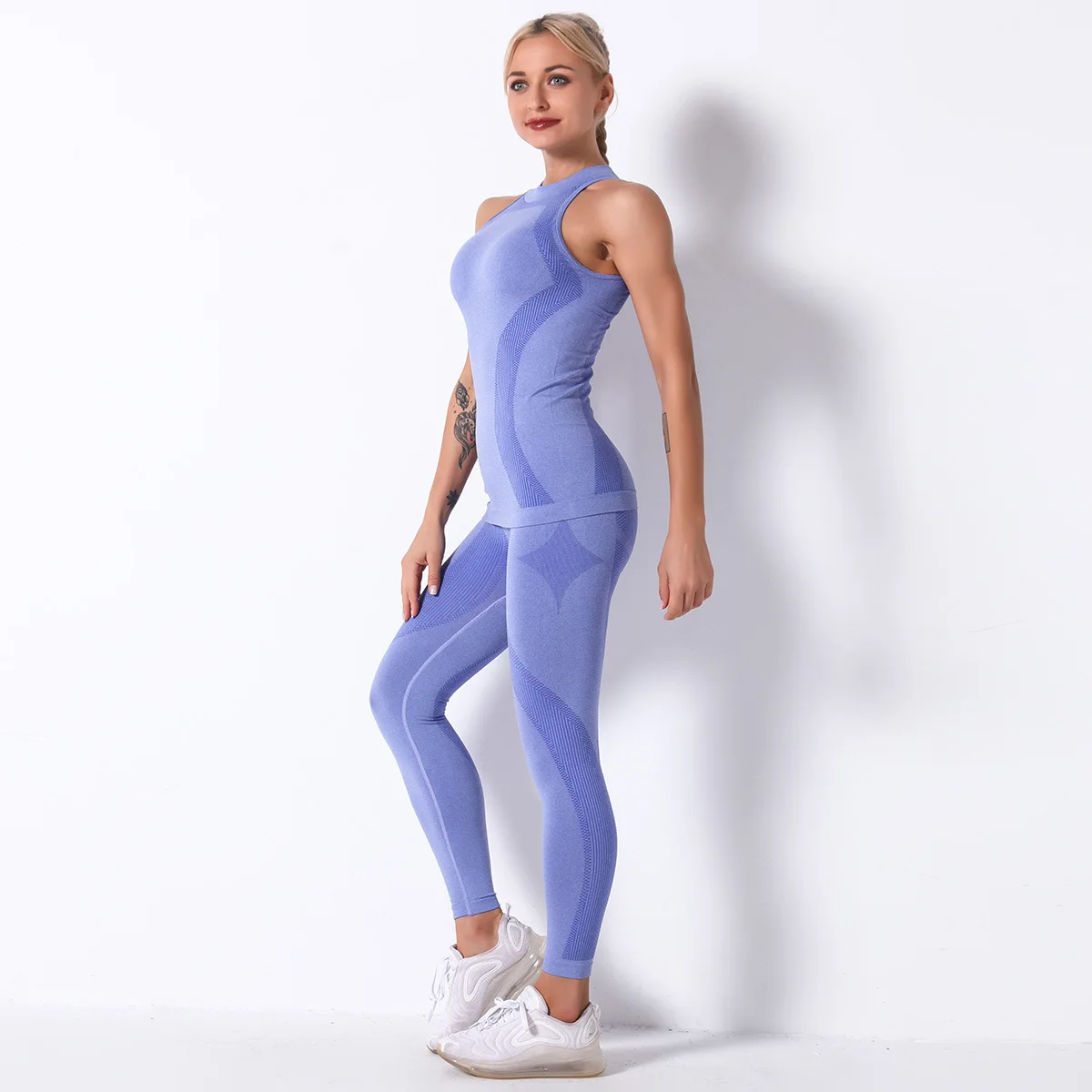 Отзывы о Женский спортивный костюм для йоги бесшовный трикотажный в полоску из двух