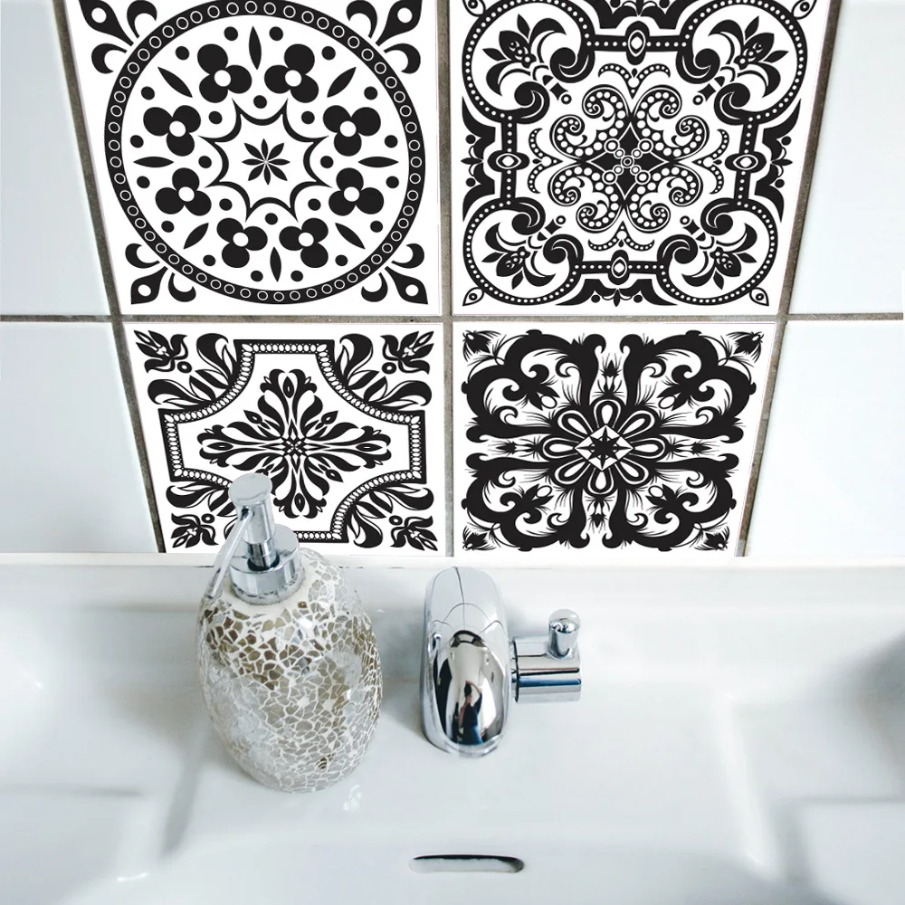 Отзывы о Черно-белые ретро маркиканские квадратные наклейки для плитки - купить по