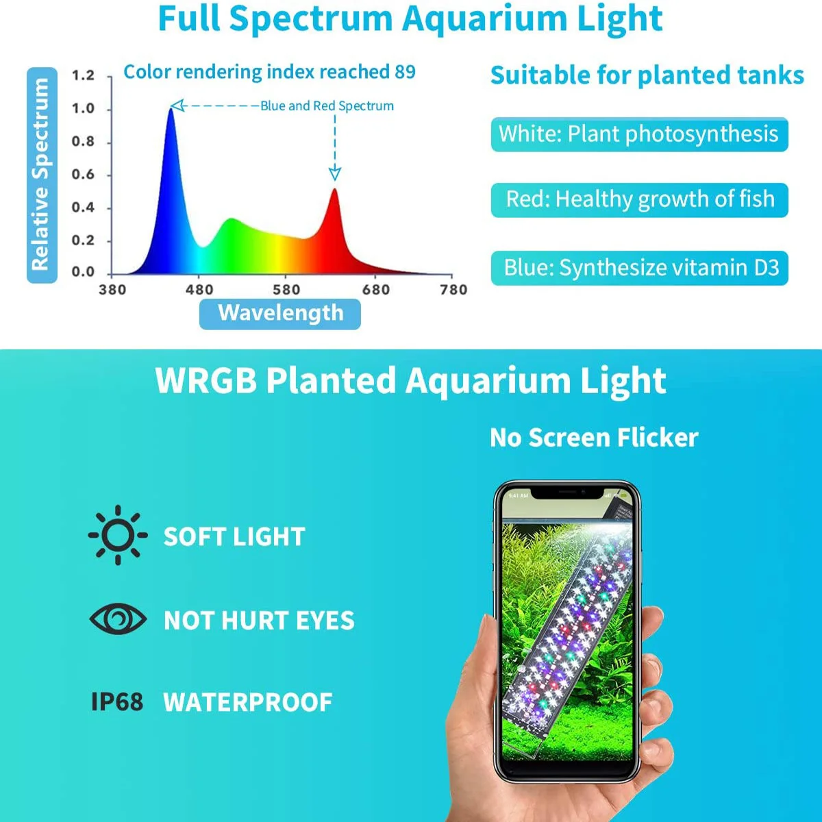 Клей для полировки: WRGB 2 Тонкий аквариумный светодиодный светильник класс водонепроницаемости IP68, полностью морской светодиодный, полностью пыленепроницаемый и водонепроницаемый. Защитите светодиодный индикатор, чтобы он прослужит дольше.