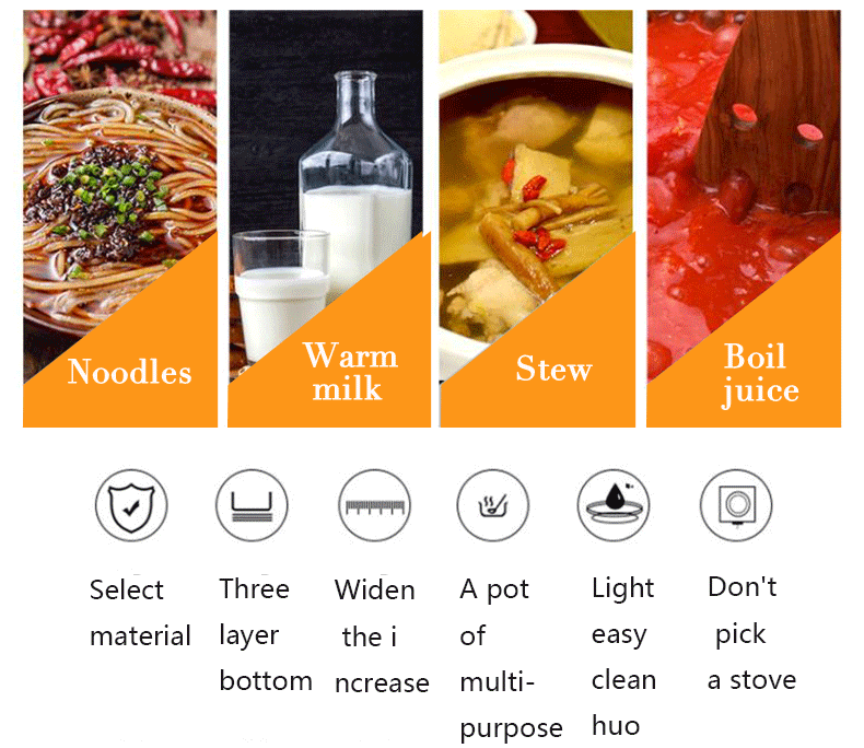6. Изготовлен из высококачественного импортированного материала из нержавеющей стали, легко моется. После использования горшка оставшаяся температура может использоваться для очистки горшка, что является удобным и экономичным. Добавьте воду или немного моющего средства и используйте губку или губку для очистки горшка вдоль линии горшка.