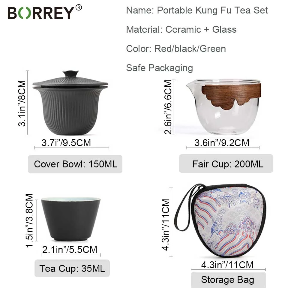BORREY керамический портативный дорожный чайный набор кунг-фу быстросъемная чашка один горшок две чашки стеклянная антицарапная чайная чаша для путешествий на открытом воздухе чайный набор