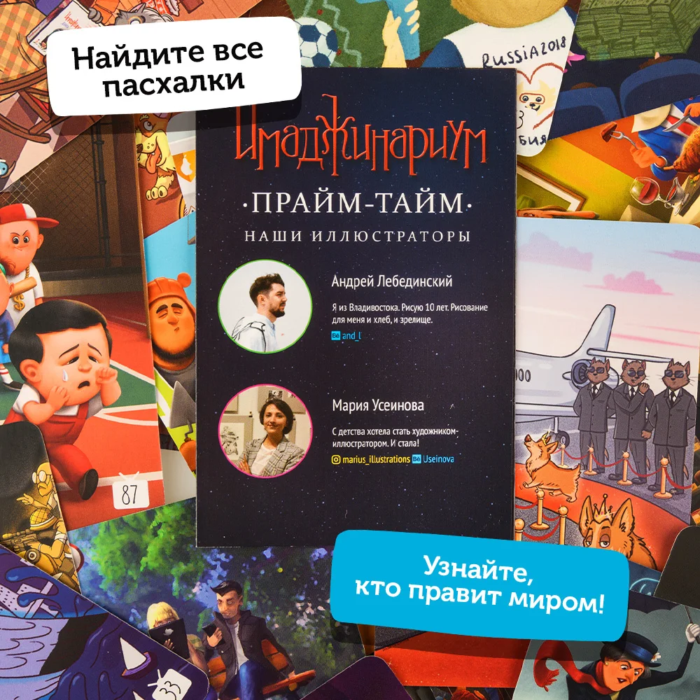«Имаджинариум Прайм-тайм» — это дополнение к «Имаджинариуму», популярной настольной игре на ассоциации. Карточки из этого допа совсем не похожи на остальные: здесь изображены нашумевшие события и неоднозначные ситуации. С этим дополнением вас ждут новые злободневные ассоциации и бурные обсуждения.