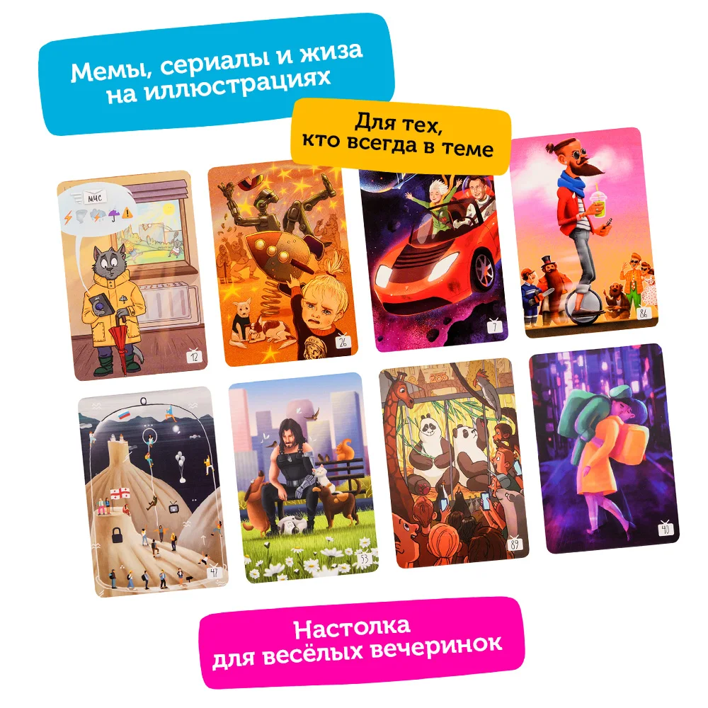 Новые карточки делают игру в «Имаджинариум» ещё интереснее! Вы можете заменить новой колодой любую из классических или дополнить ей основную, чтобы игра длилась ещё дольше.