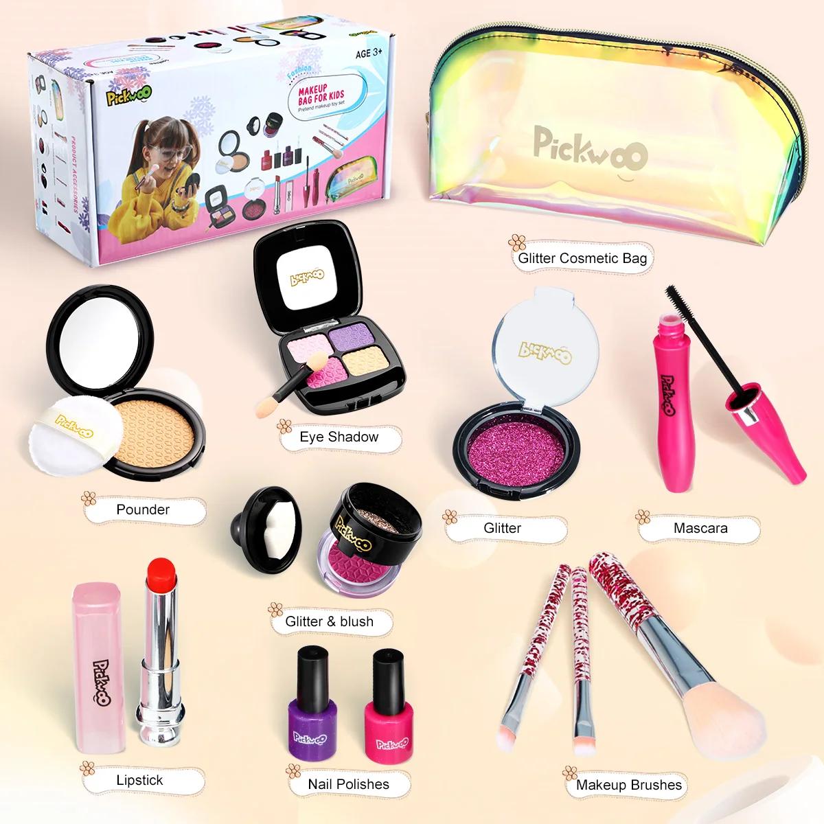 【 Нетоксичный и 100% безопасный 】Набор для макияжа Pickwoo Play полностью притворяется, но выглядит и ощущается настоящим! Без беспорядка и окрашивания, просто сделайте вид, что получите удовольствие! Изготовлен из экологически чистого материала, безопасен и нетоксичен, имеет красивую форму, закругленный и без заусенцев.