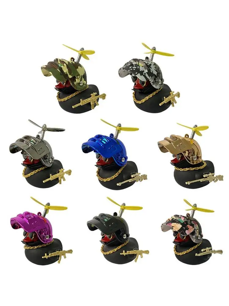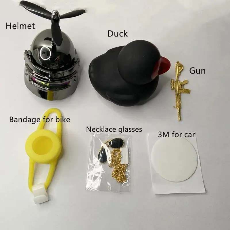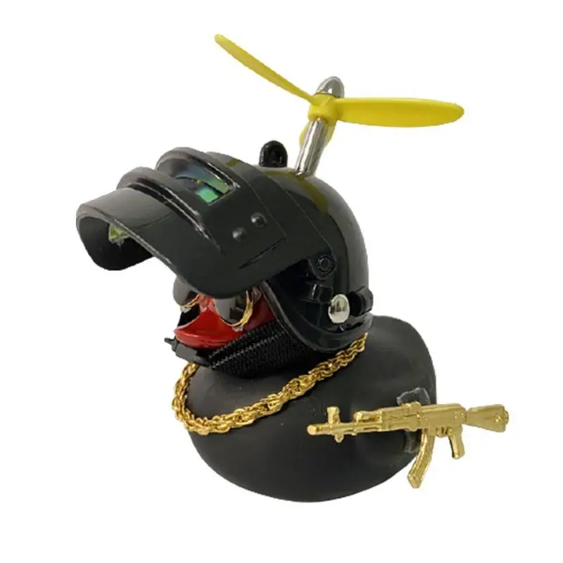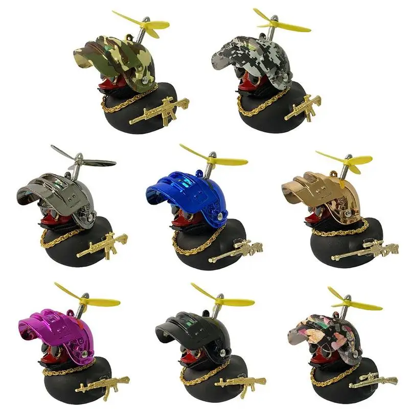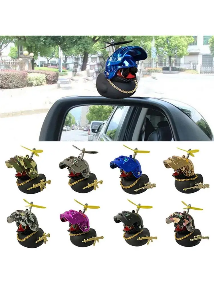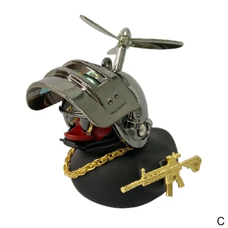 Характеристики: звук при ношении, мягкий материал, безопасный и прочный, хорошее качество утиного мяса, безопасное сырье, не вредит здоровью человека, оснащен шлемом, винтами, солнцезащитными очками, металлической цепочкой для ожерелья, супер круто. Он очень подходит для использования на автомобильных капюшонах, зеркалах заднего вида и т. д., а также может использоваться на шлемах для детского катания на роликах. Это действительно мило.