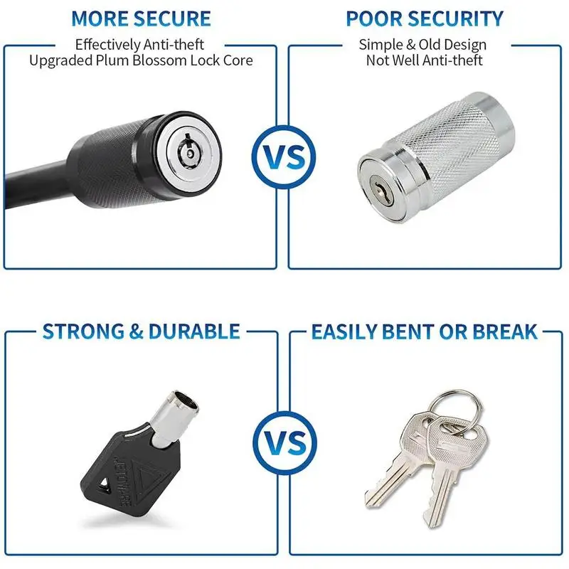 Безопасный и простой в использовании-Блокировка приемника сцепного устройства с трубчатым сердечником из высококачественного цинкового сплава в новейшей технологии защиты от кражи, чтобы обеспечить первоклассную безопасность для вас, пылезащитный колпачок предназначен для того, чтобы держать замочную скважину вдали от воды и грязи, отличный дизайн для более удобного использования.