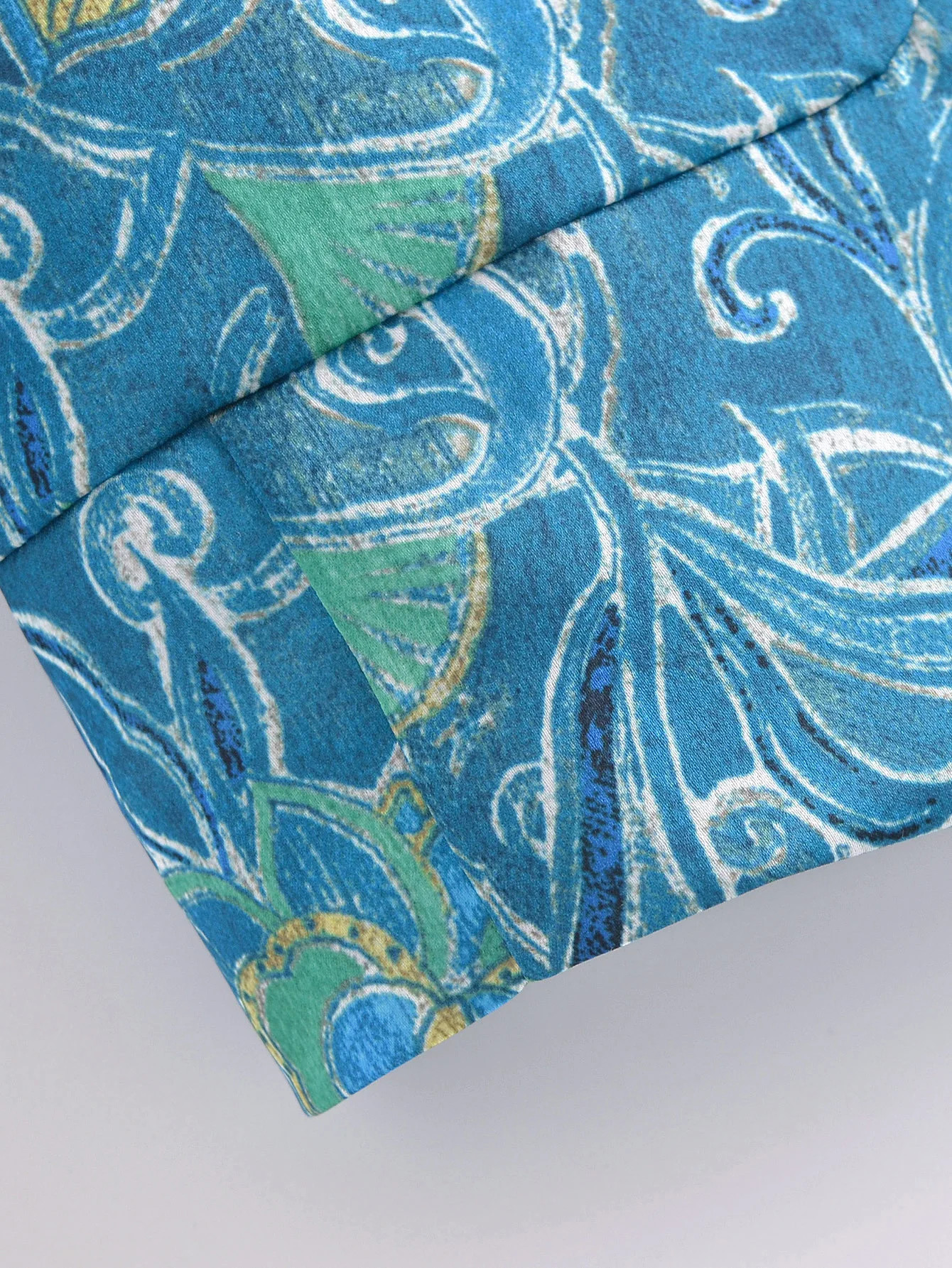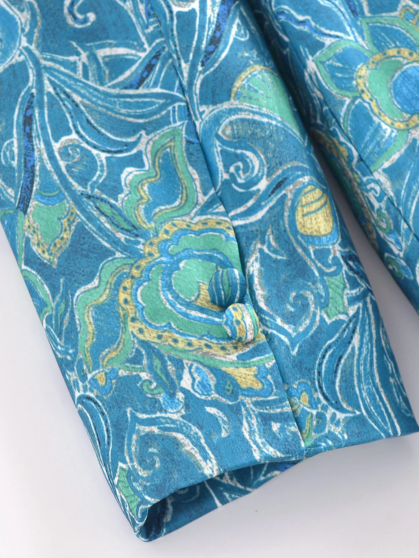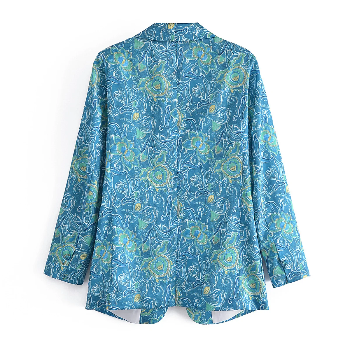 Отзывы о Женский офисный пиджак Za синий винтажный с цветочным принтом и длинными рукавами