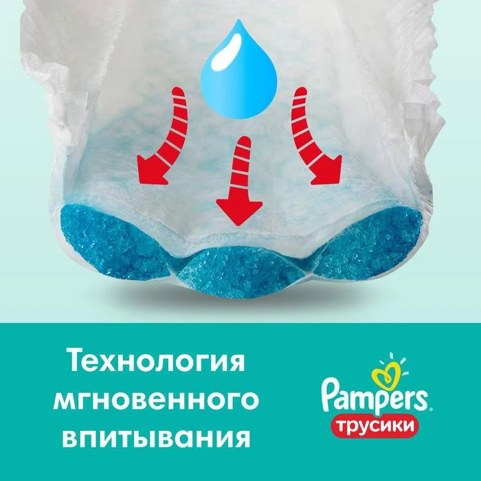 Новые трусики Pampers Pants с анатомической посадкой. Супермягкий эластичный поясок нежно прилегает к животику, мягкие бортики вокруг ножек помогают защитить нежную кожу малыша от натираний, а технология мгновенного впитывания удерживает влагу внутри, обеспечивая сухость до 12 часов – как днём, так ночью. Трусики Pampers легко надевать и снимать, так что активные малыши смогут продолжать изучать мир вокруг, не отвлекаясь на смену трусиков! А когда трусики понадобится поменять, просто разорвите их по боковому шву!