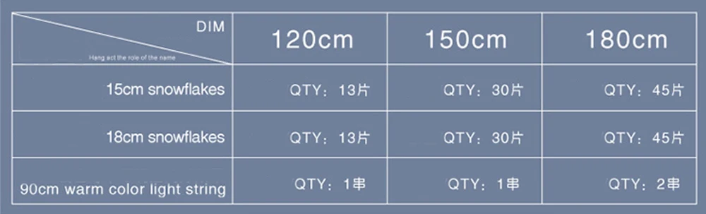1,8 мКомплект: 1,2 M + 15 см снежные хлопья [45 штук] + 18 см снежные хлопья [45 штук] + 2 шт. светильник полосы