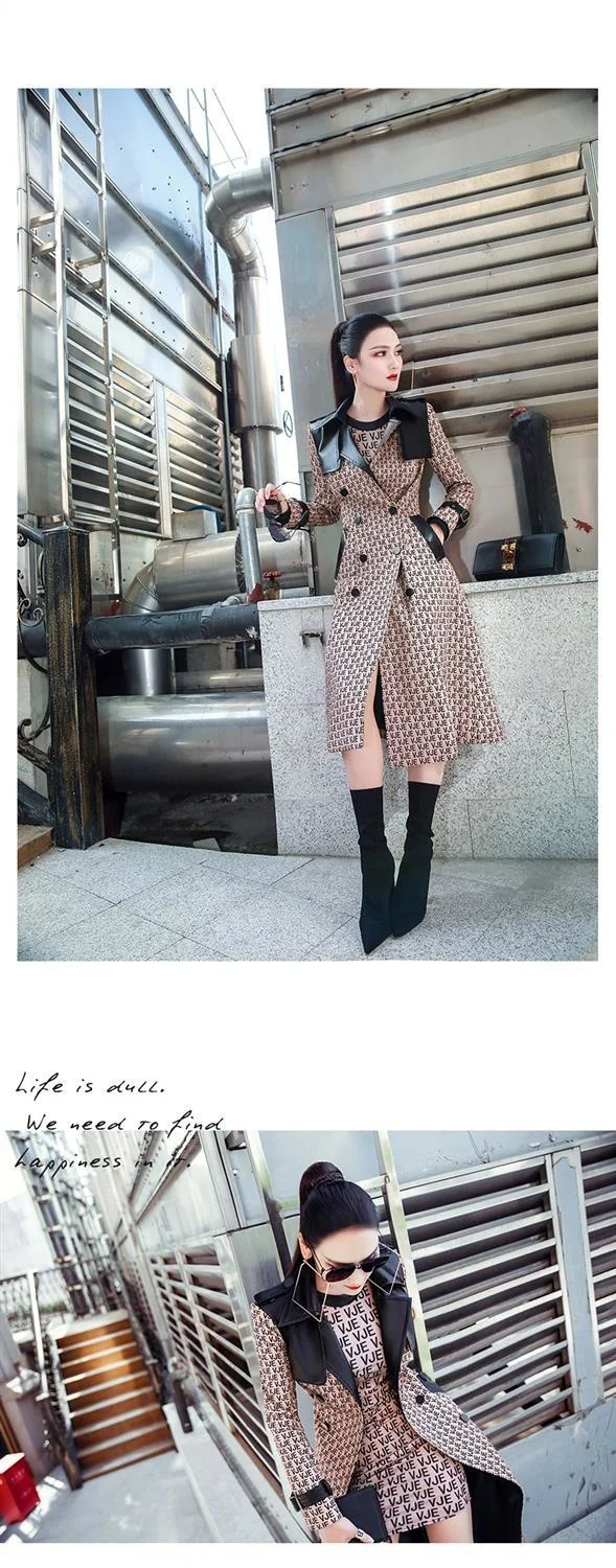 [Плата за возврат упаковки] модная женская куртка с буквенным принтом в британском стиле; Сезон осень; Новинка 2021 года; Модная ветровка с контрастной талией средней и длинной длины