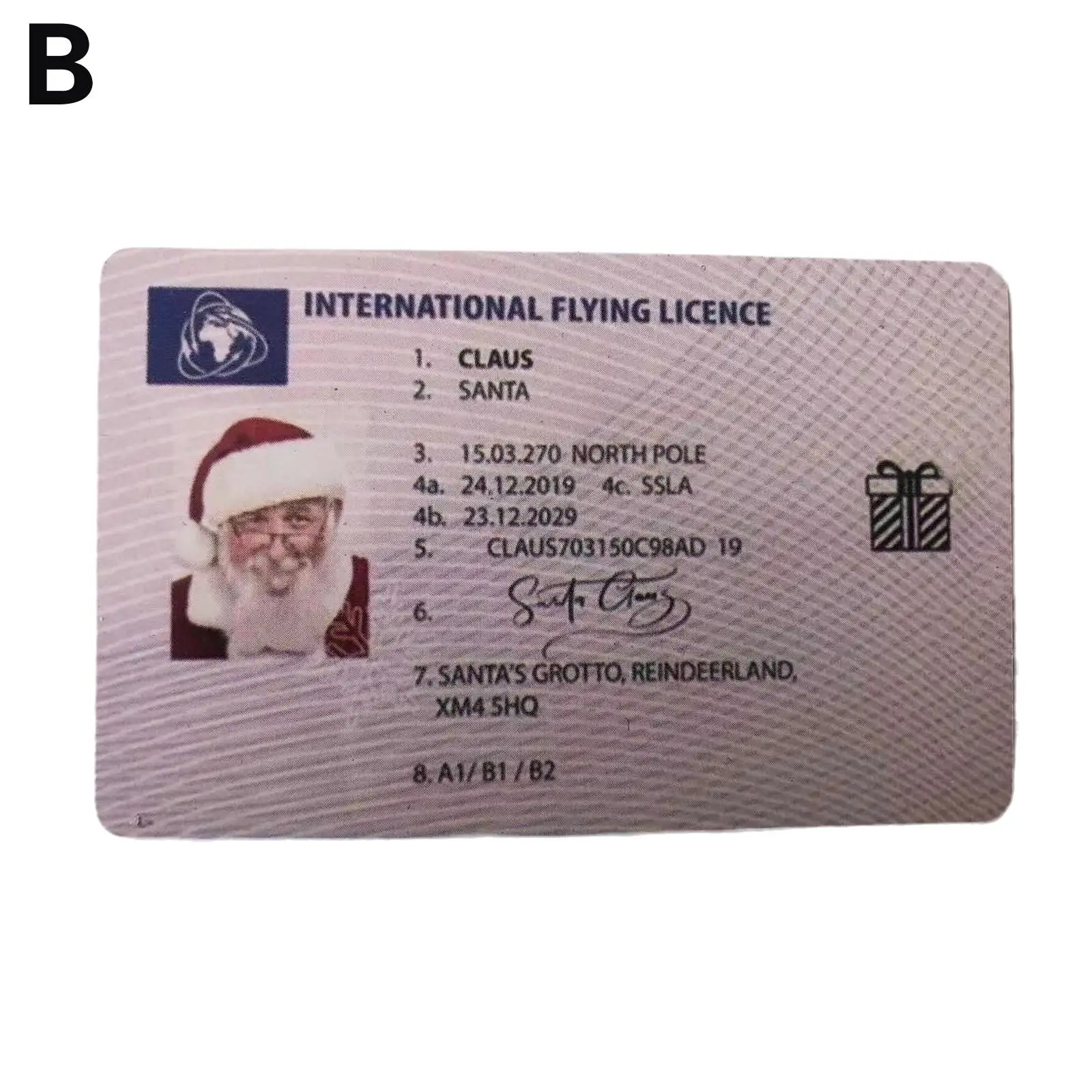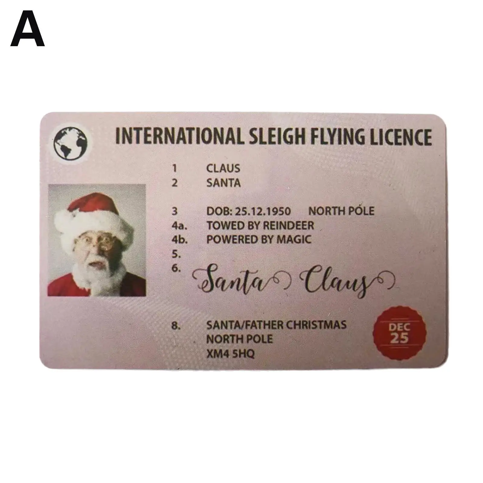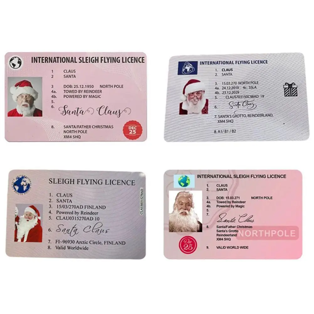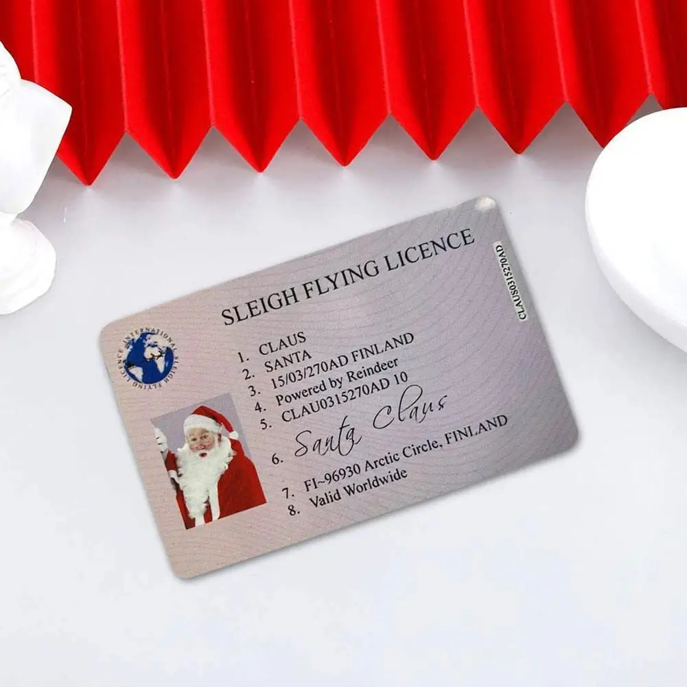 3. Идентификационная карта Санта-Клауса: предоставляя свои личные данные вместе с классом лицензии, эти профессионально напечатанные предметы находятся на пластиковых картах с картами Размера Кредитной Карты с скошенными углами, такими же, как и обычные лицензии.