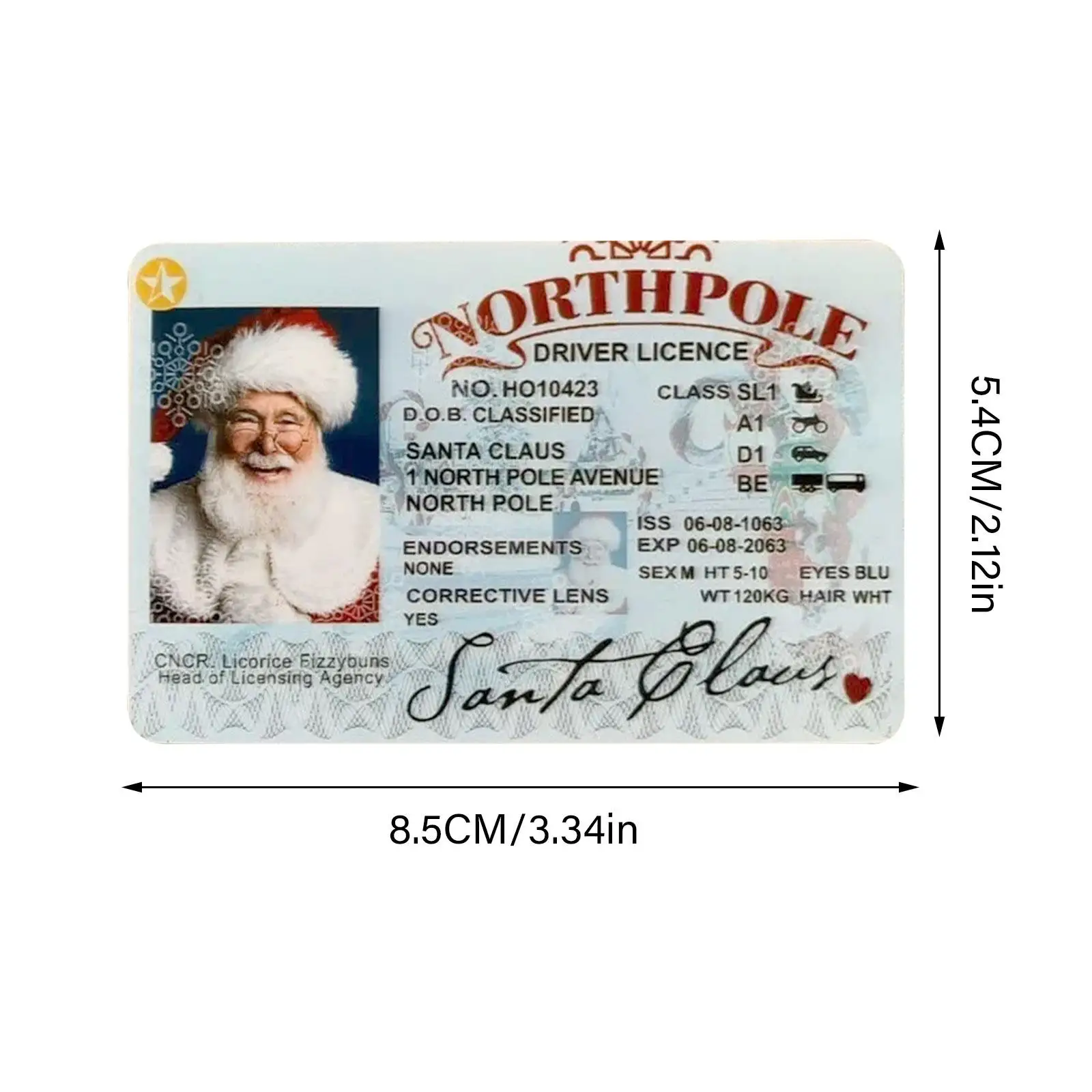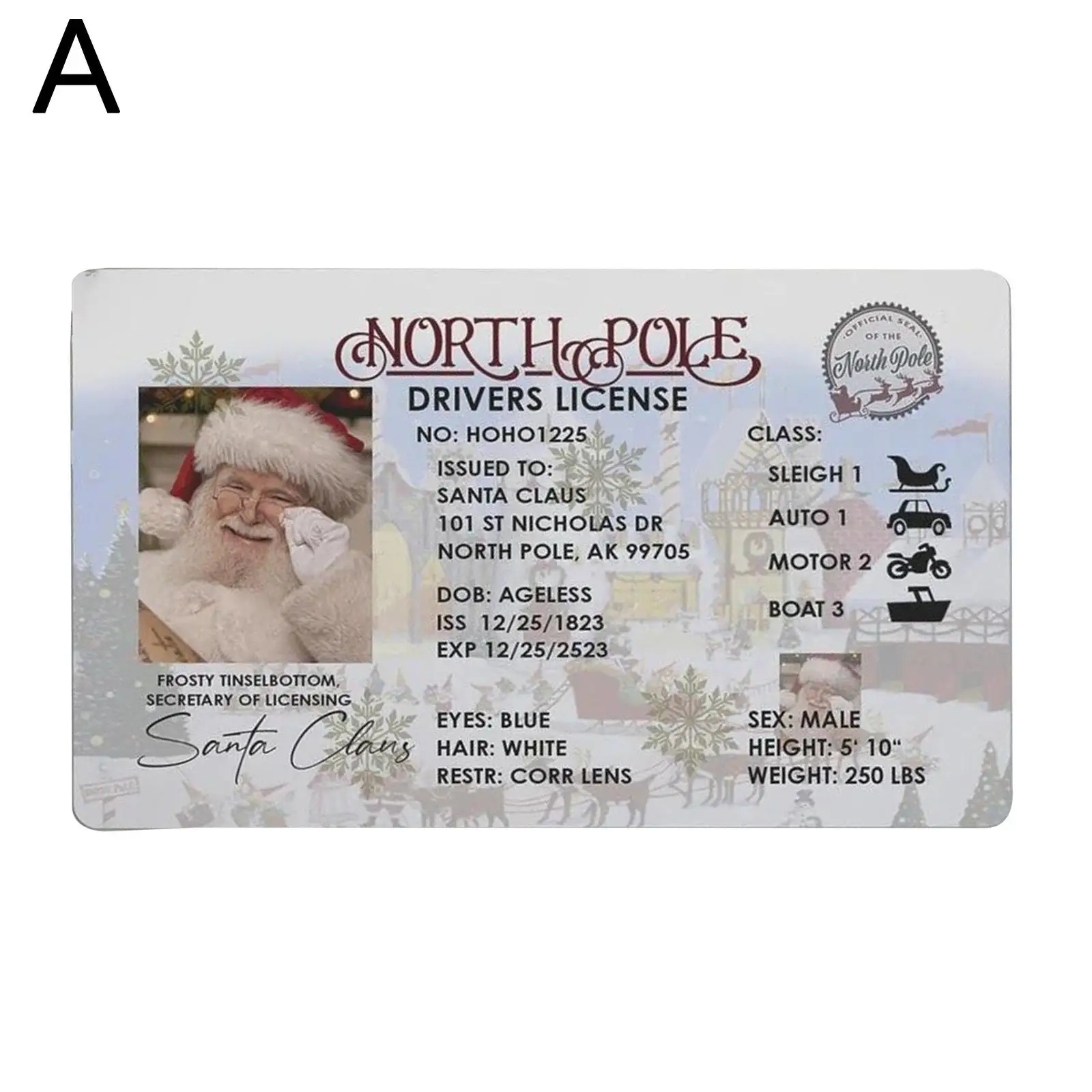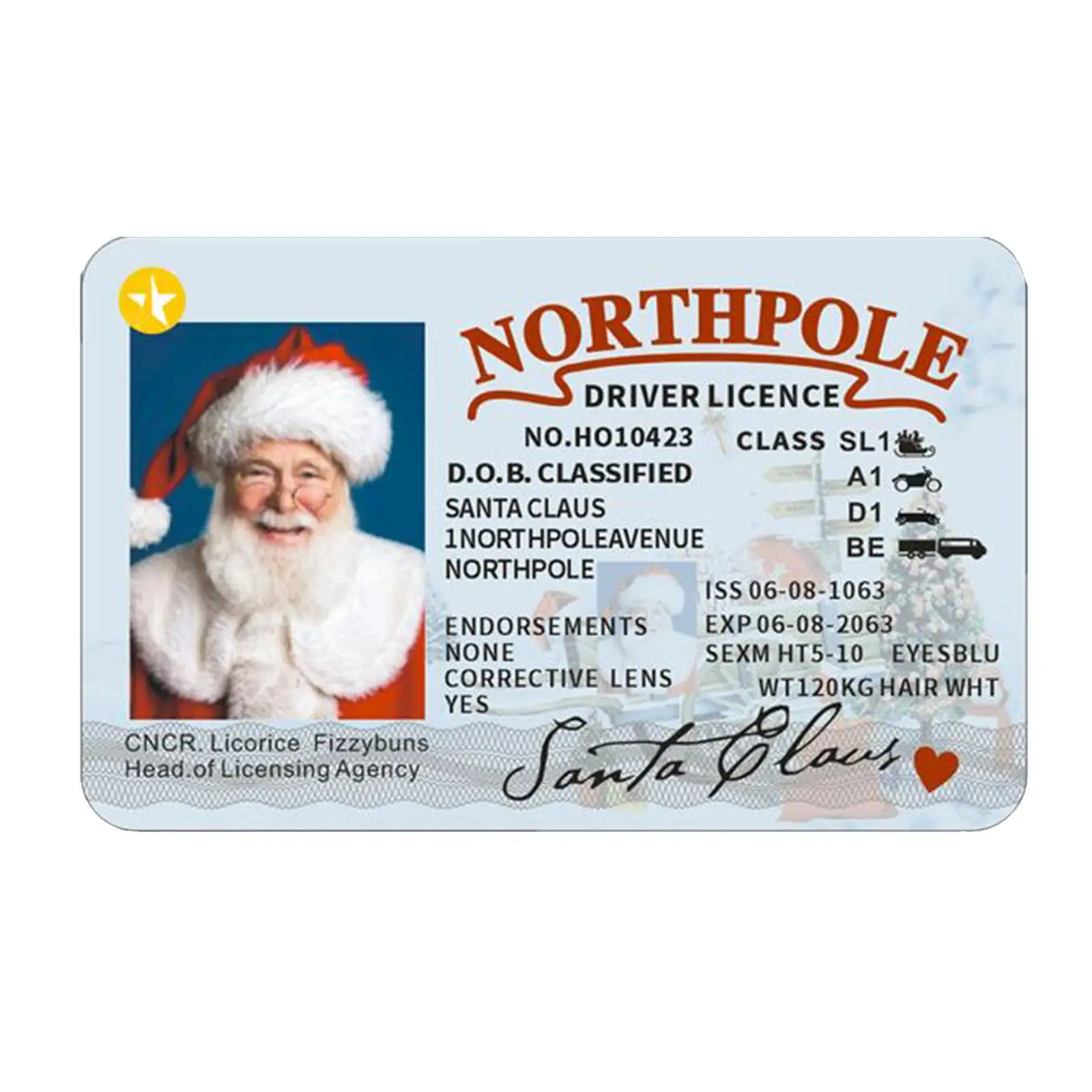 3. Идентификационная карта Санта-Клауса: предоставляя свои личные данные вместе с классом лицензии, эти профессионально напечатанные предметы находятся на пластиковых картах с картами Размера Кредитной Карты с скошенными углами, такими же, как и обычные лицензии.