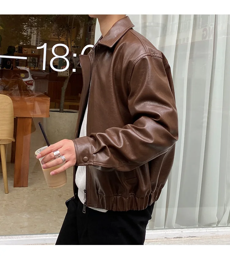 Отзывы о Мужская одежда куртка из искусственной кожи корейская мода повседневная Осенняя