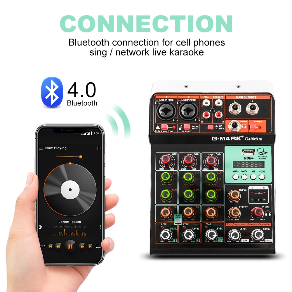 Отзывы о Портативный мини-микшер для аудио G40Mini с Bluetooth и USB 48 В | Электроника