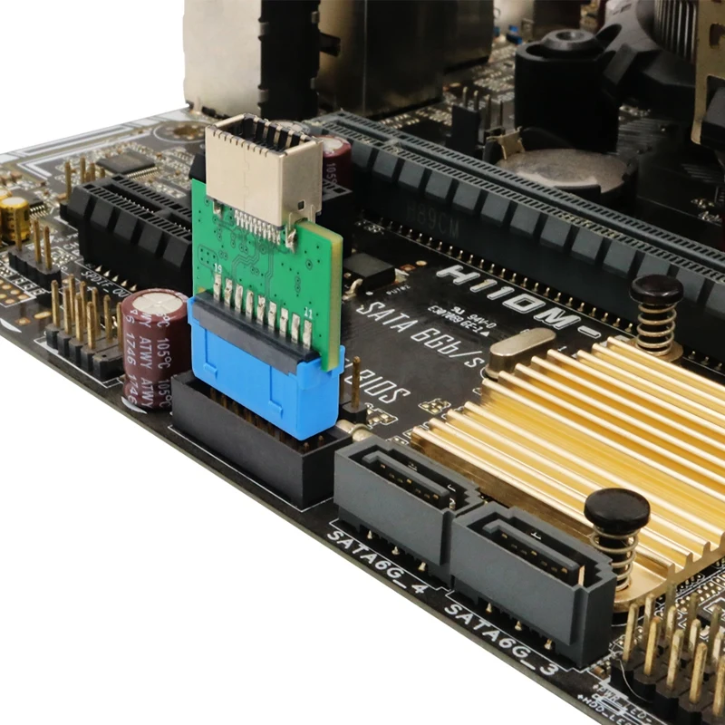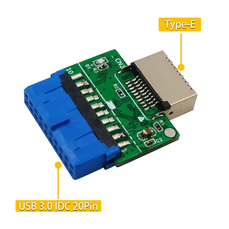 1. Интерфейс USB3.0 19PIN TYPE-E 20PIN адаптер-интерфейс USB3.0 19PIN TYPE-E 20PIN, соединение стабильное. Крепится на кронштейн PCI, помогает легко подключить устройства с интерфейсом type C.