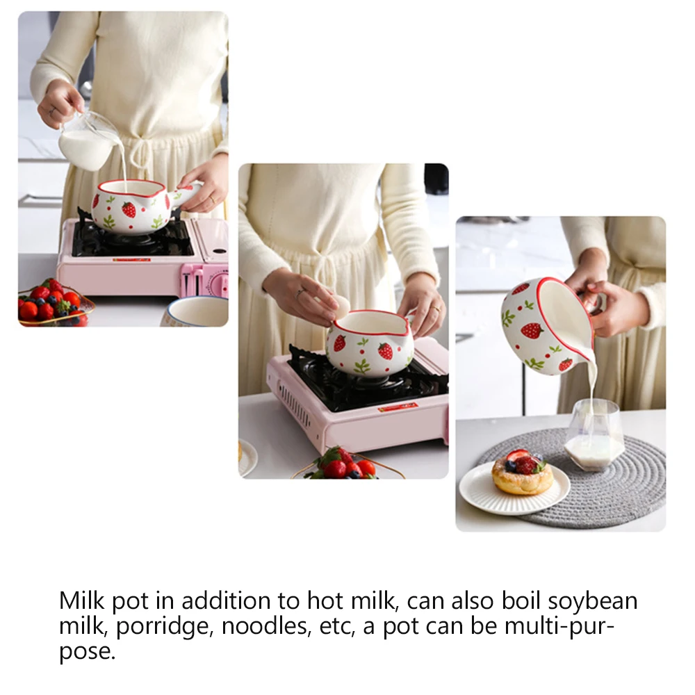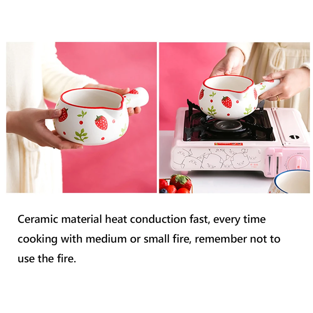 1 шт., 800 мл, керамическая сковорода для молока, креативная Клубничная вишня, мини кастрюля для кухни, кастрюля для приготовления каши, супа, тушеная посуда