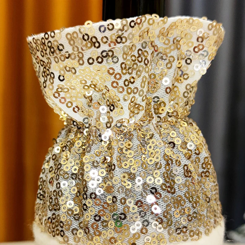 Отзывы о Рождественский чехол для винной бутылки с золотыми блестками Дед Мороз Снеговик