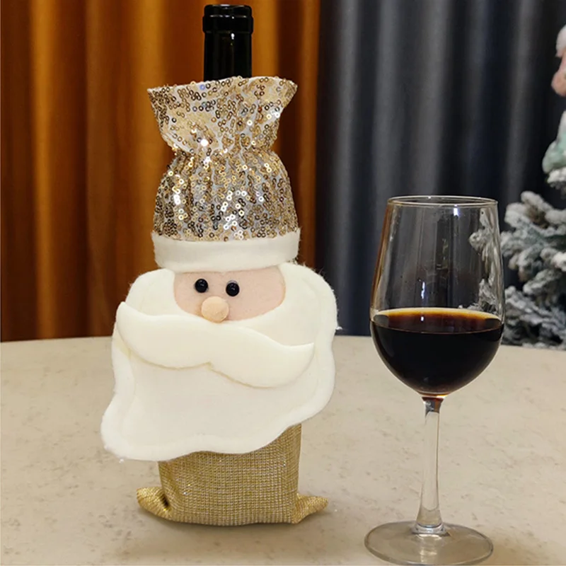Рождественская крышка бутылки вина золотые блестки Санта-Клаус Снеговик обеденный стол Декор домашний Ресторан Новогоднее Рождественское украшение