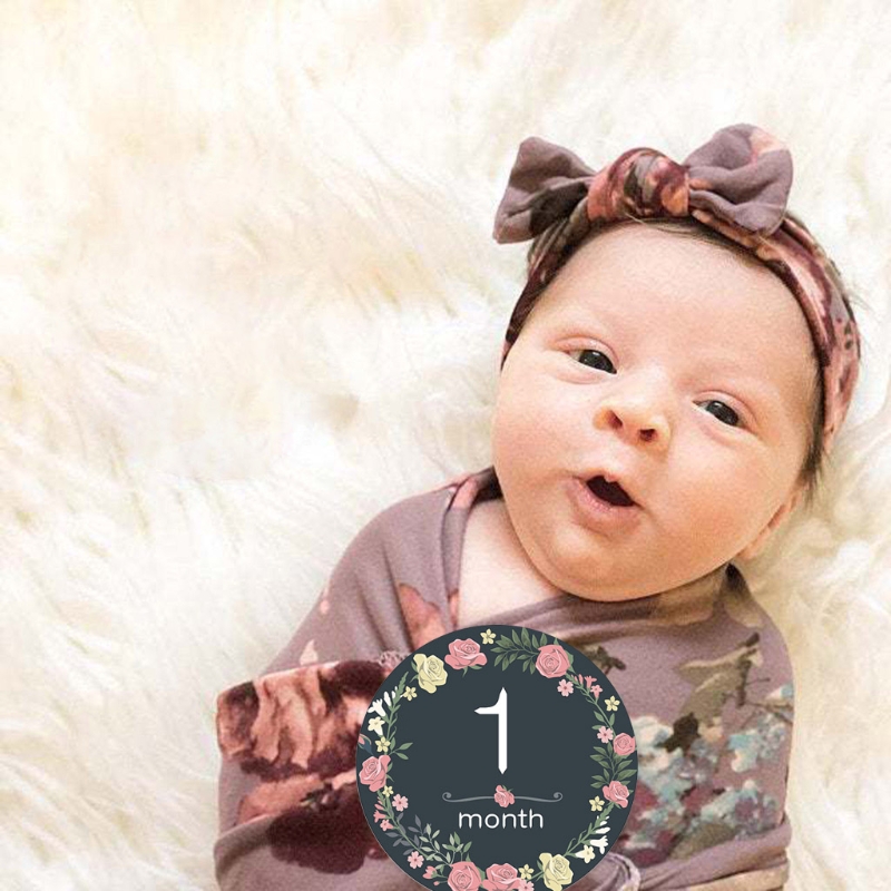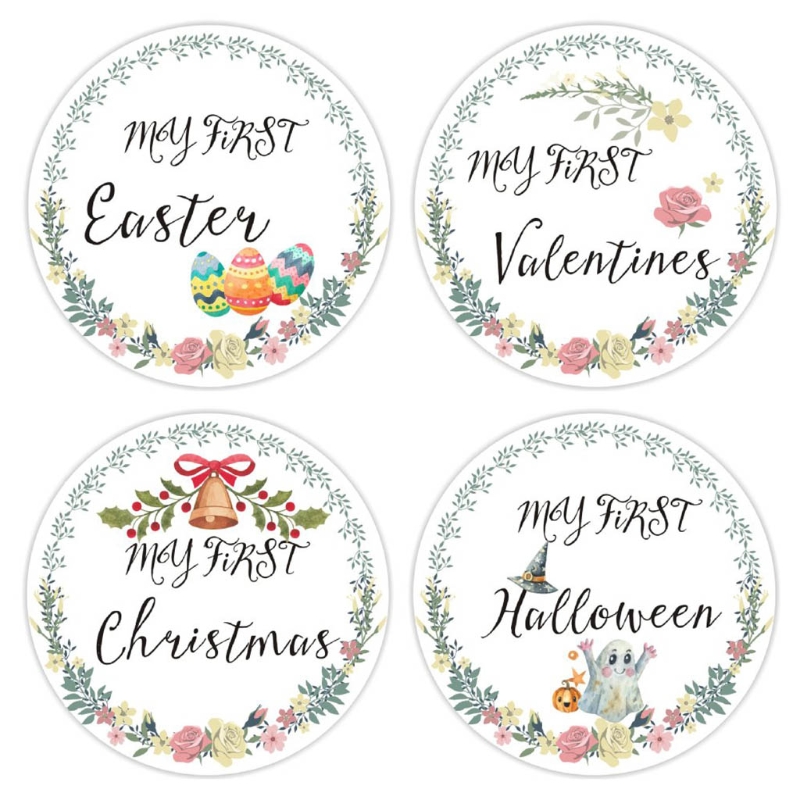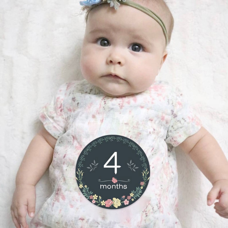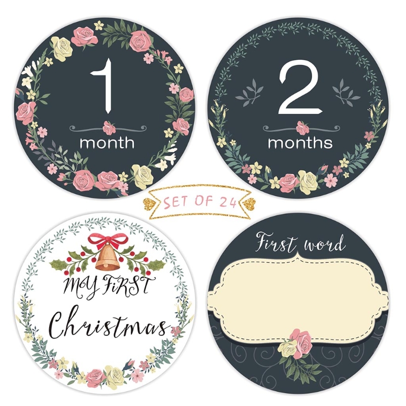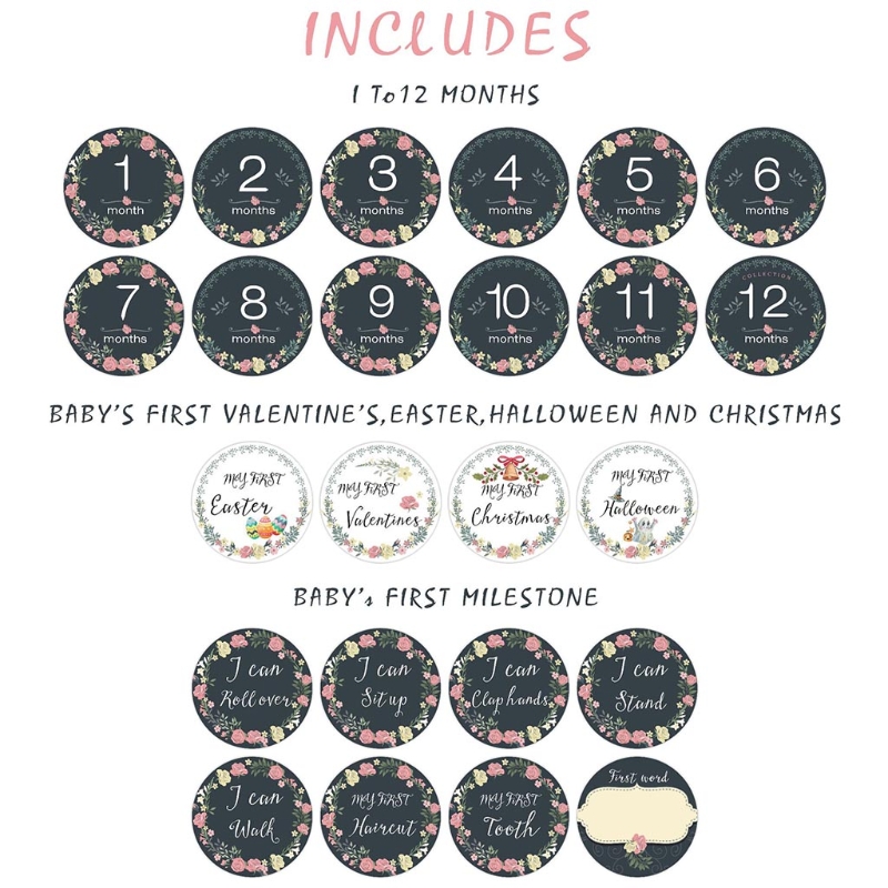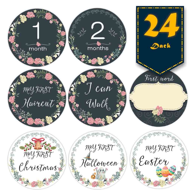 Наклейки позволяют новым родителям фотографировать возраст/размер своего ребенка каждый месяц, а также специальные вехи и праздники.
