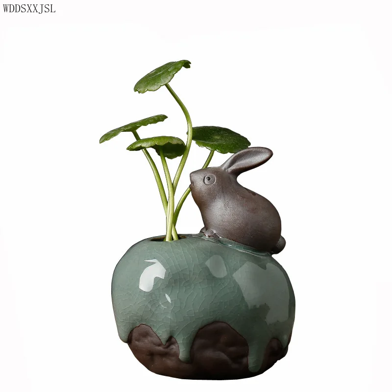 WDDSXXJSL Ретро креативный китайский стиль домашний Цветочный декор Чай для домашних животных керамика рельеф Ge печи керамическая Маленькая ваза гидропонная посуда для цветов