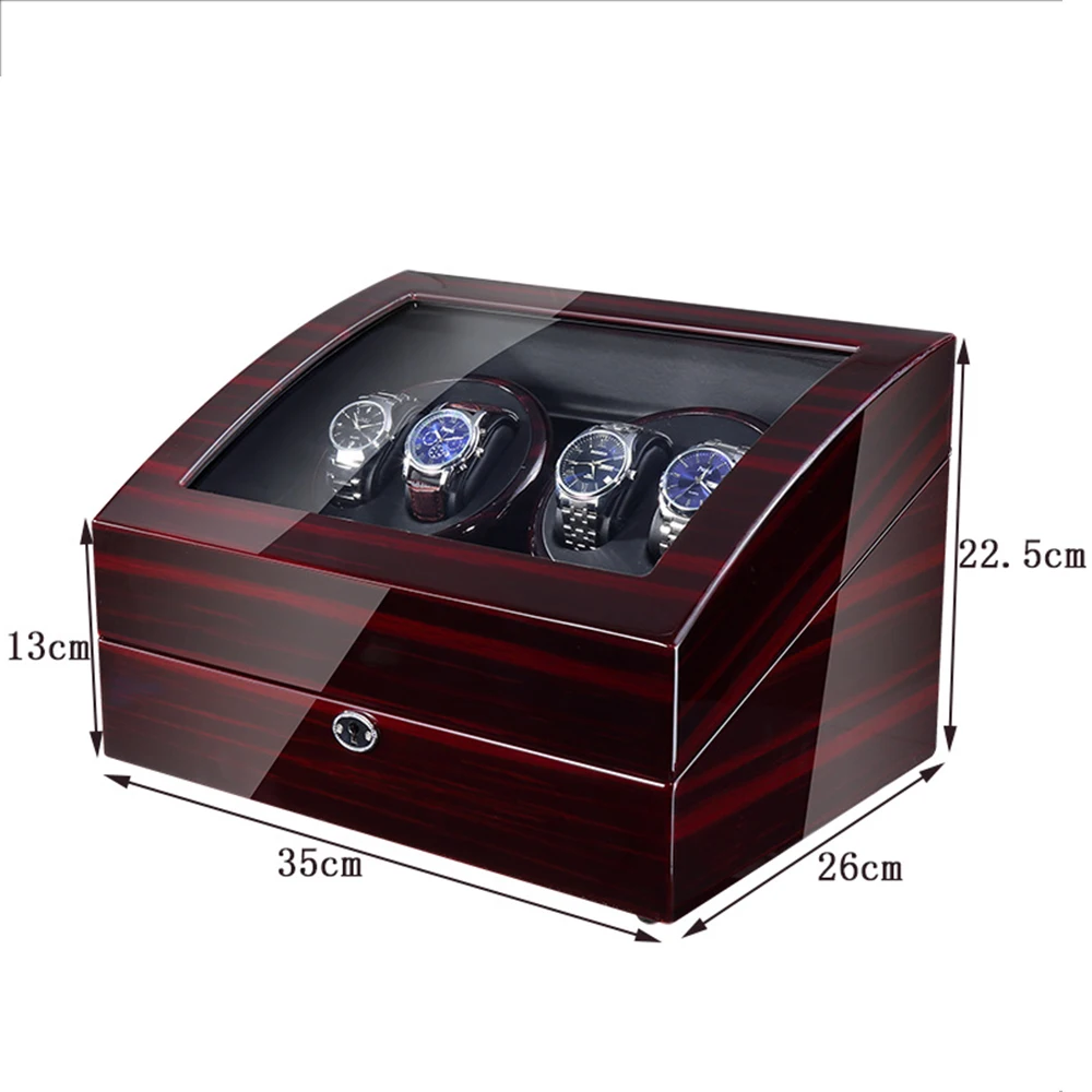Один для всех: Эта намотка часов имеет 4 намотки пространства и 6 пространства для хранения, которые обеспечивают максимальную гибкость. Деревянный корпус + фортепианная краска + подушки для часов с эффектом памяти + акриловое стекло + чрезвычайно бесшумный двигатель.
