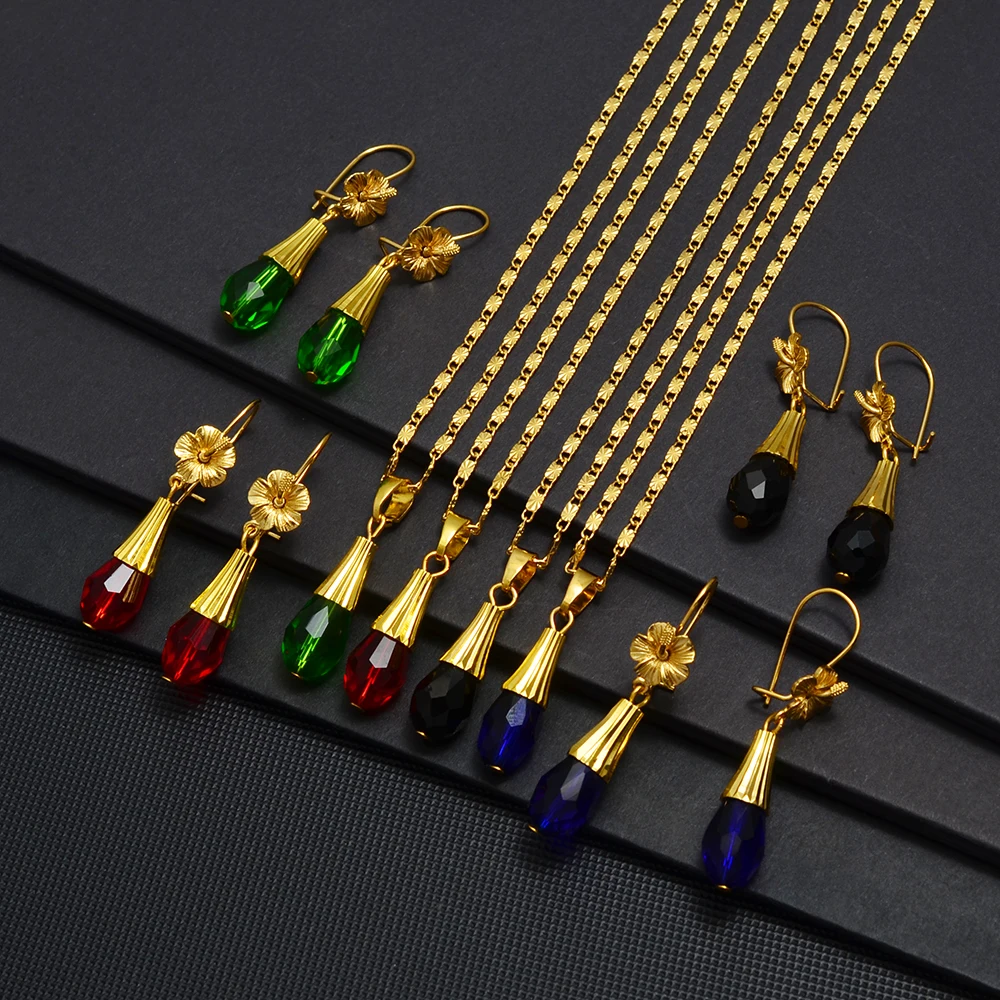 Отзывы о Набор украшений Anniyo с гавайским цветным кристаллом подвеска ожерелье серьги