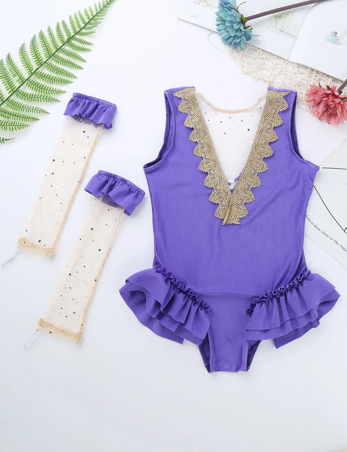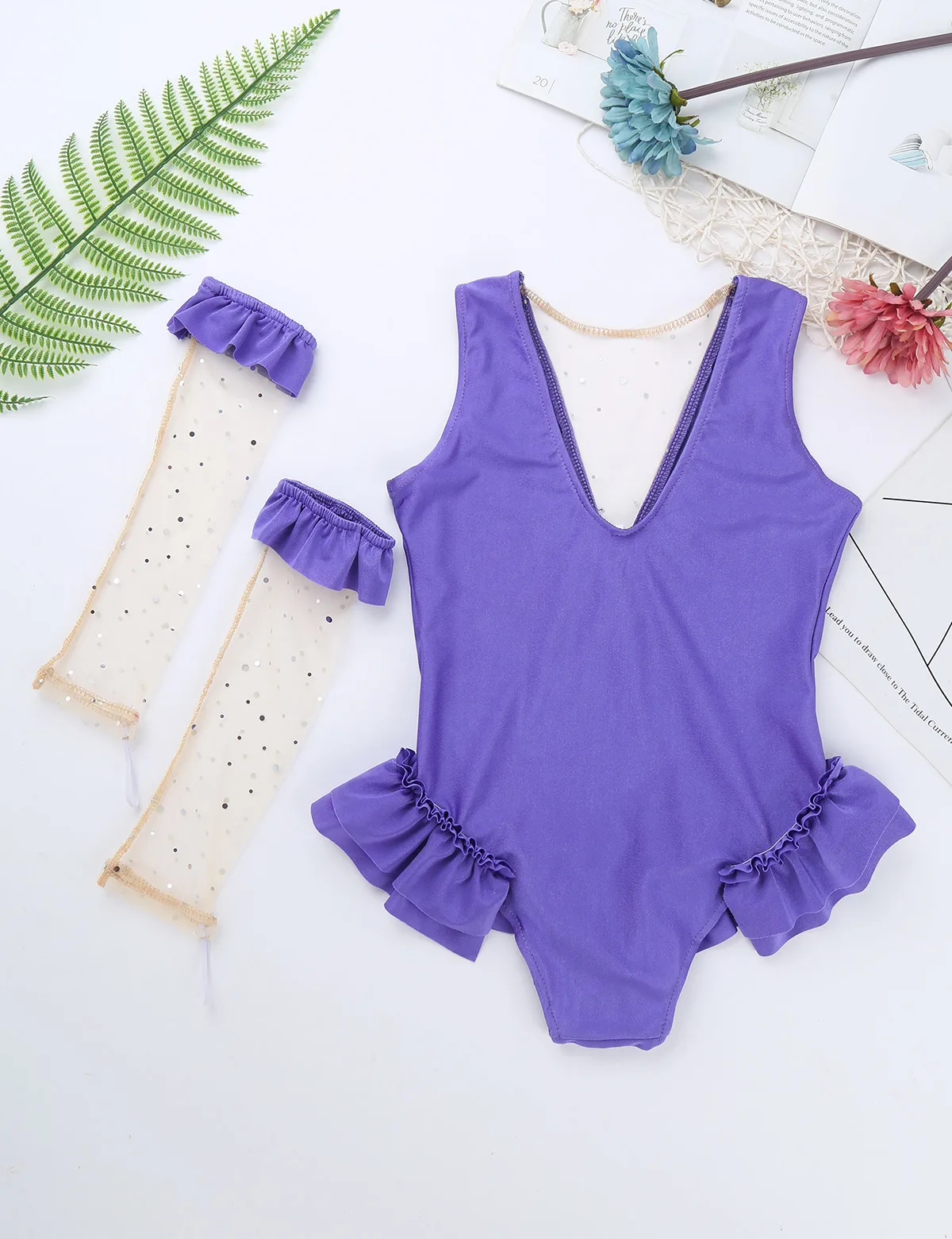 Гофрированные эластичные отверстия для ног. Сочетающаяся пара сетчатых рукавов. Красивый костюм для вашей девочки.