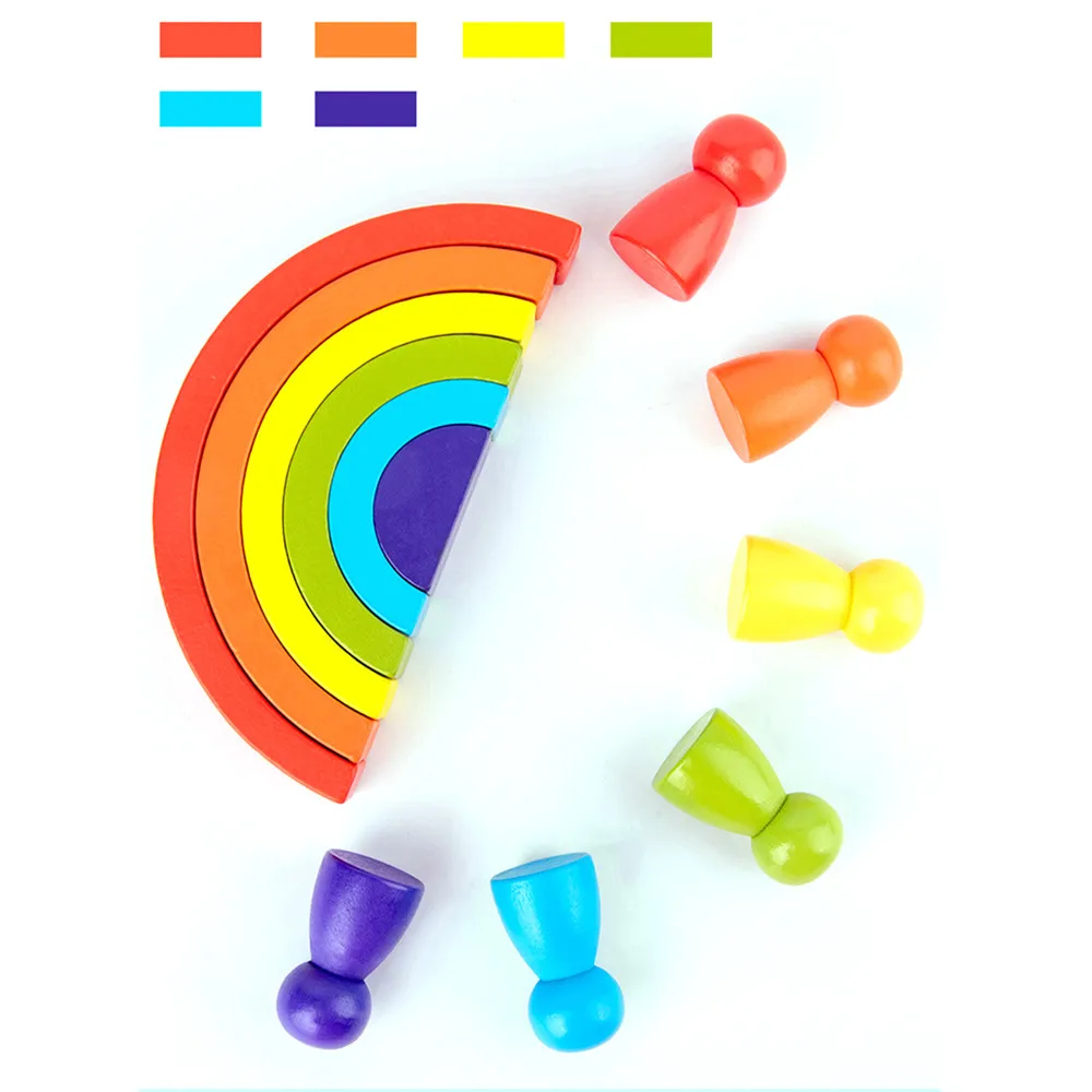 Деревянная детская игрушка в виде радуги, Монтессори, радужные строительные блоки, деревянная игра, Ранняя развивающая игрушка для маленьких мальчиков и девочек