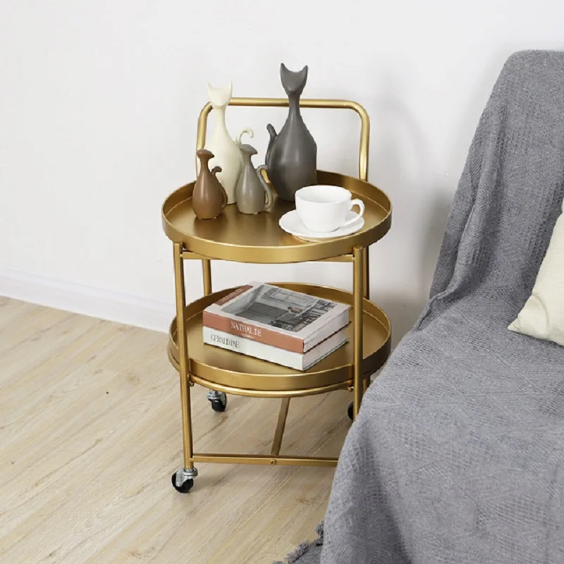 Двухслойный удобный простой в использовании сборный передвижной журнальный столик тележка для гостиной Lron чайный стол со шкивом