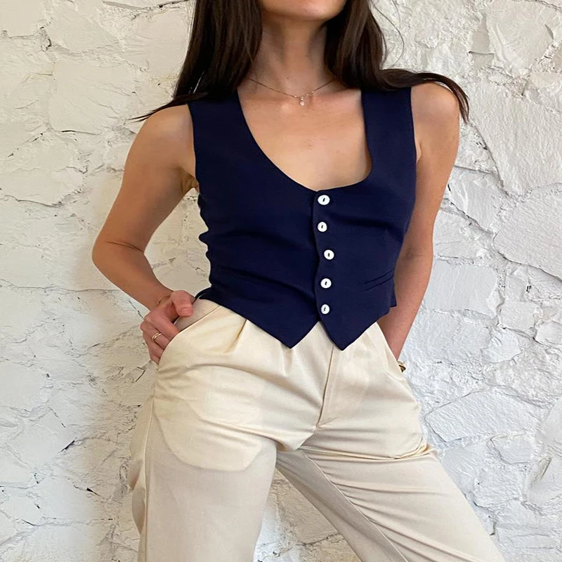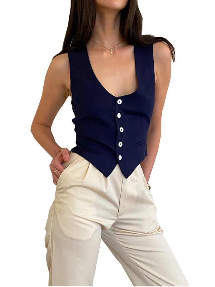 Отзывы о Женский костюмный жилет с U-образным вырезом повседневный Тонкий однобортный