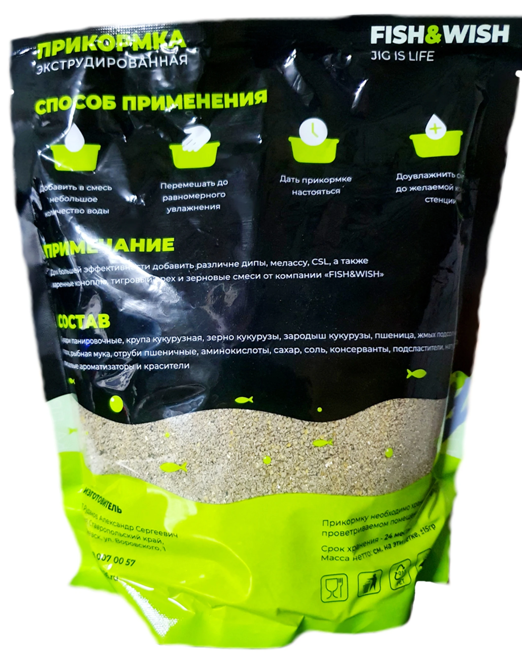 Прикормка Экструдированная, собственного производства, высокого качества, легка в использовании,хороша в замешивание. Отлично собирает рыбу на точке закорма, частицы корма пылят вверх и вниз, создавая кормовое облако. А секретные ингредиенты от нашей компании заставляют долгое время не уплывать рыбе от вашей точки закорма😉😉😉