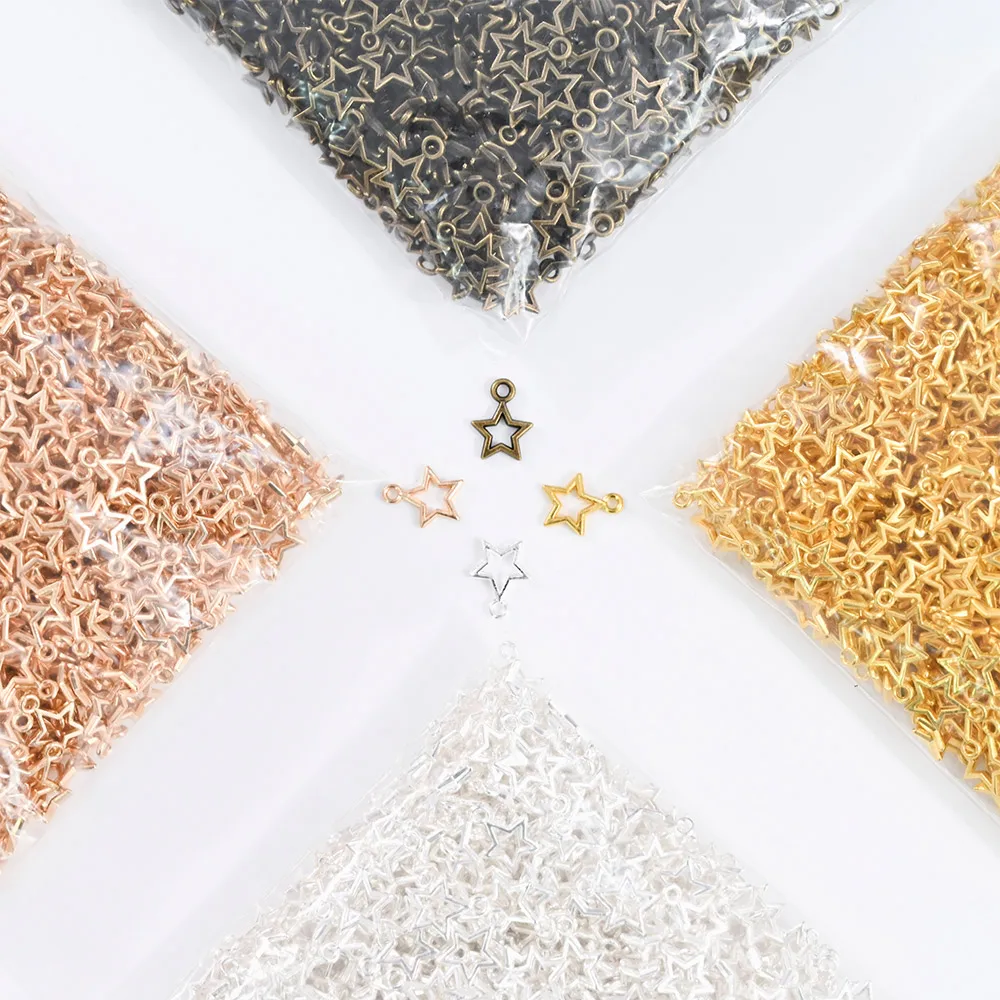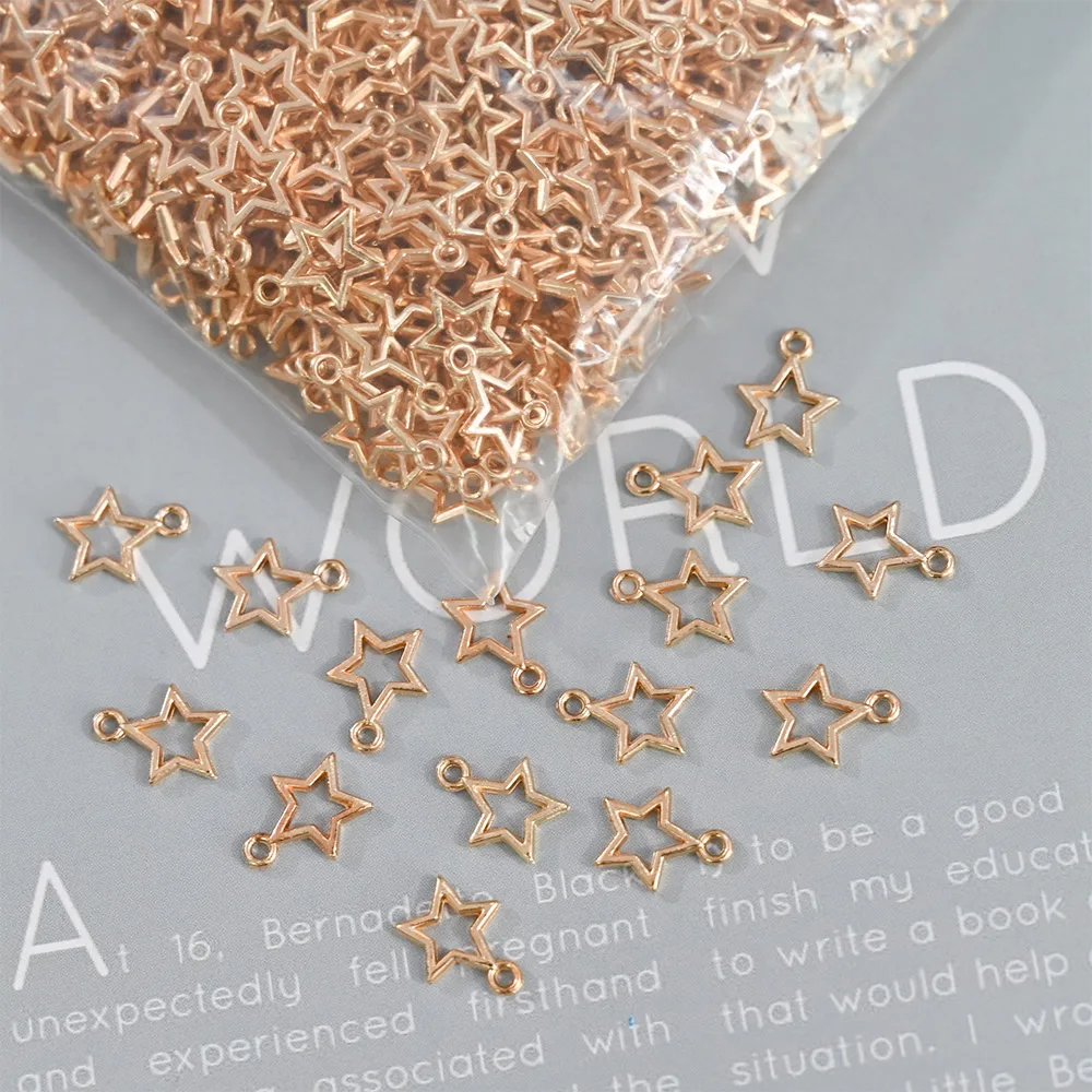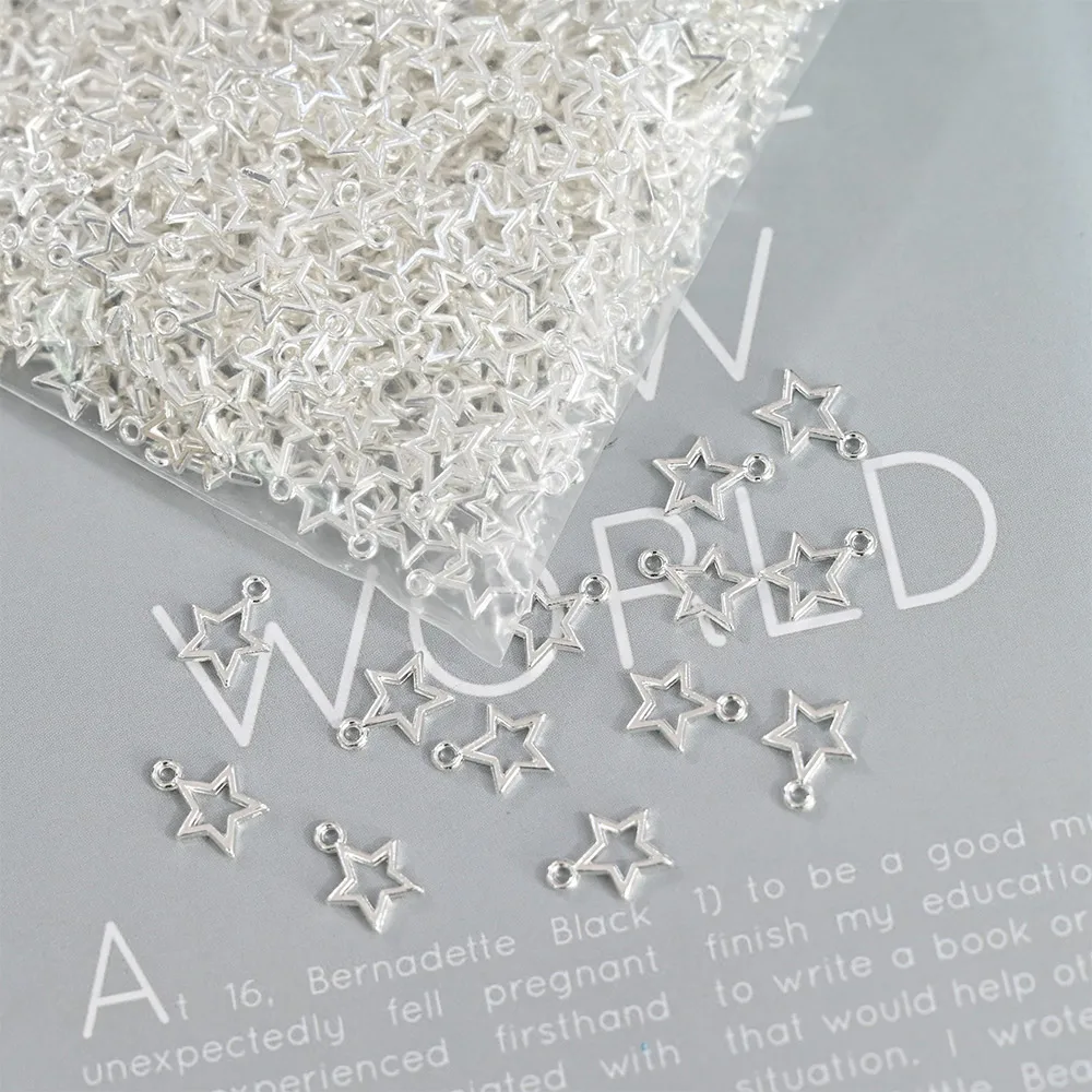 100 шт./пакет, пирсинг, золото, серебро, пустотелая звезда, 3D дизайн ногтей, украшение, Ретро стиль, заклепки, сплав, амулеты, металлический маникюр, свисающие Подвески KH #21