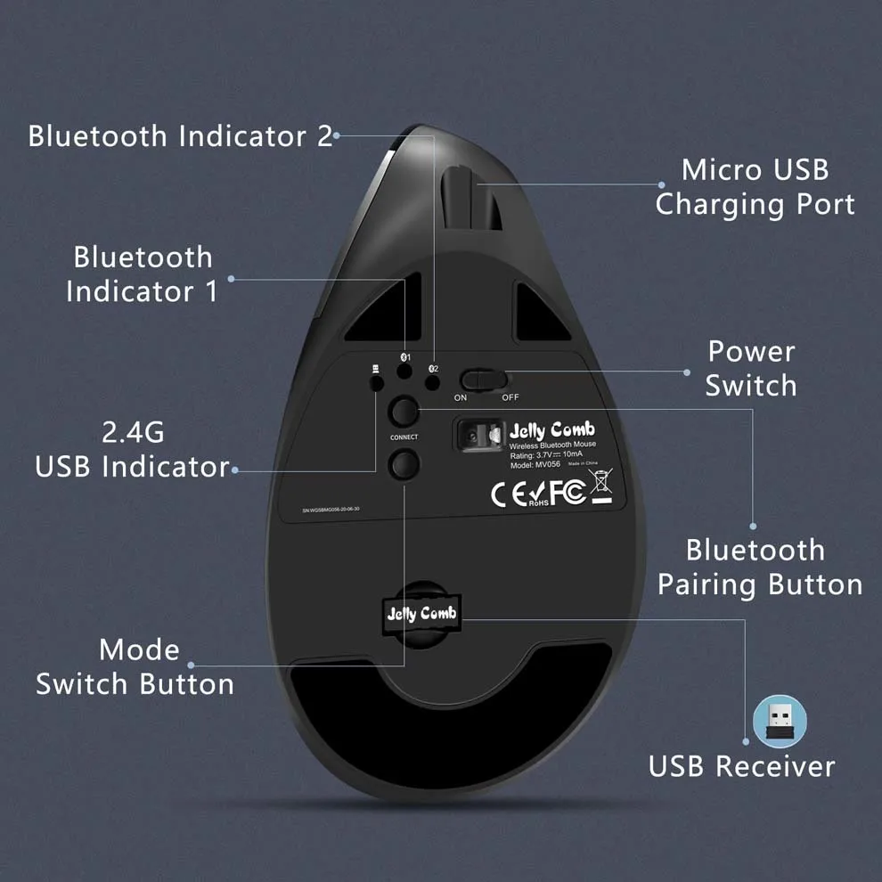 Отзывы о Беспроводная мышь Jelly Comb перезаряжаемая Вертикальная с поддержкой Bluetooth и 2 4G USB