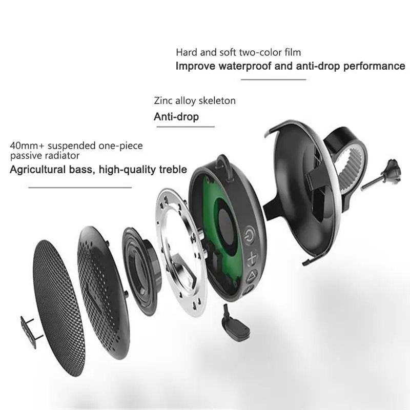 2. Водонепроницаемость IPX7: с водонепроницаемой оценкой IPX7 этот велосипедный динамик может даже погружаться в воду. Поэтому погода не будет зависеть даже в дикой природе, она очень подходит для верховой езды, пляжа, бассейна, ванной комнаты и других видов деятельности в помещении или на открытом воздухе.