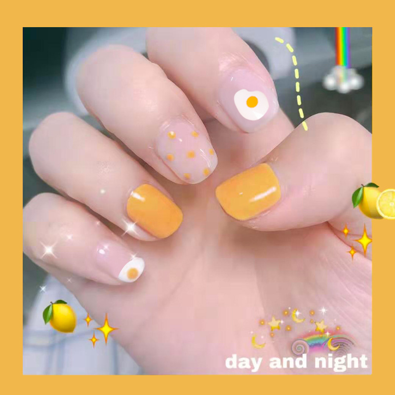 Отзывы о 24 шт Polkas Dot Poached Egg Shape Wear короткий абзац Модный маникюр накладные ногти экономят